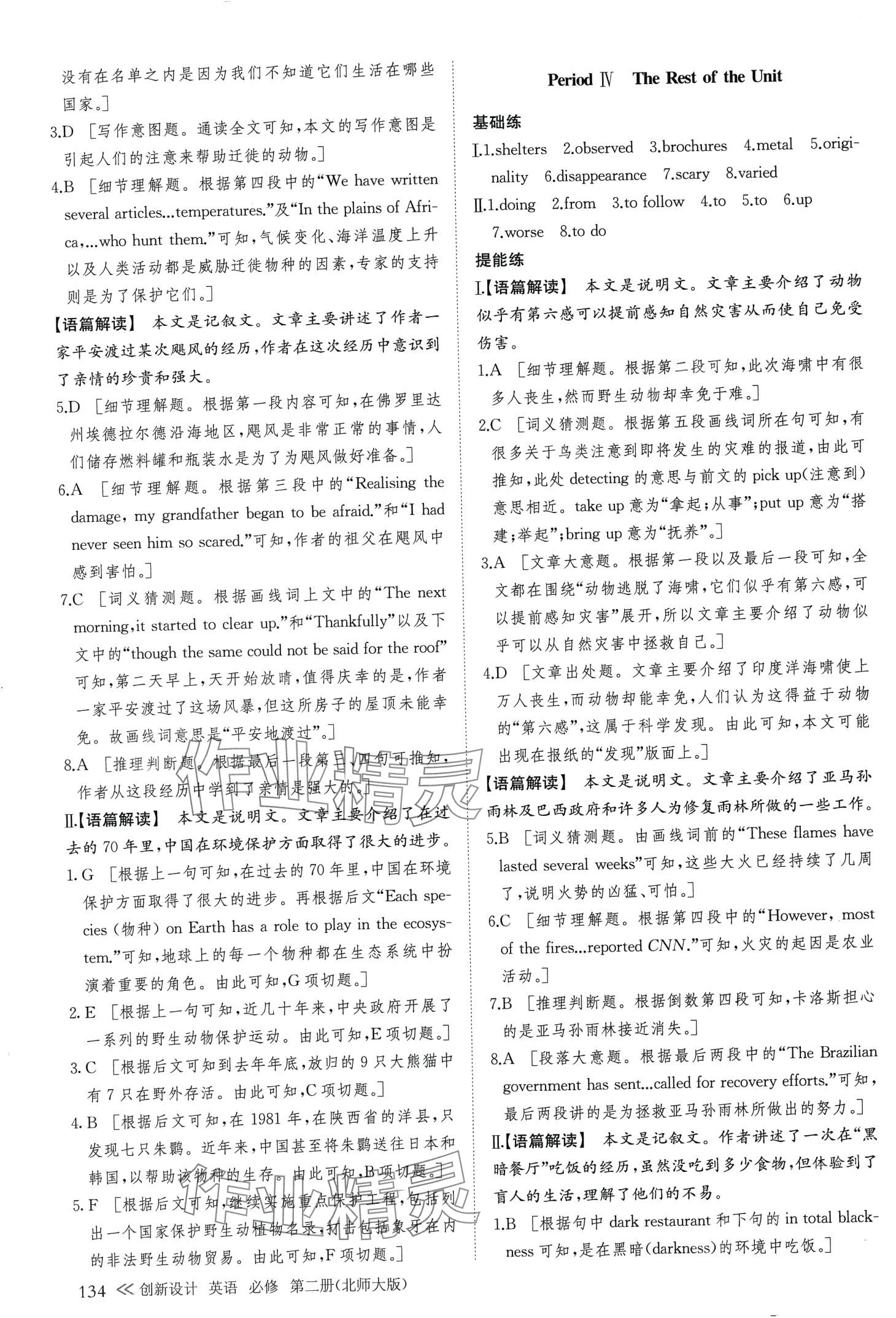 注:目前有些书本章节名称可能整理的还不是很完善,但都是按照顺序排列的,请同学们按照顺序仔细查找。练习册 2024年创新设计高中英语必修第二册北师大版 答案主要是用来给同学们做完题方便对答案用的,请勿直接抄袭。