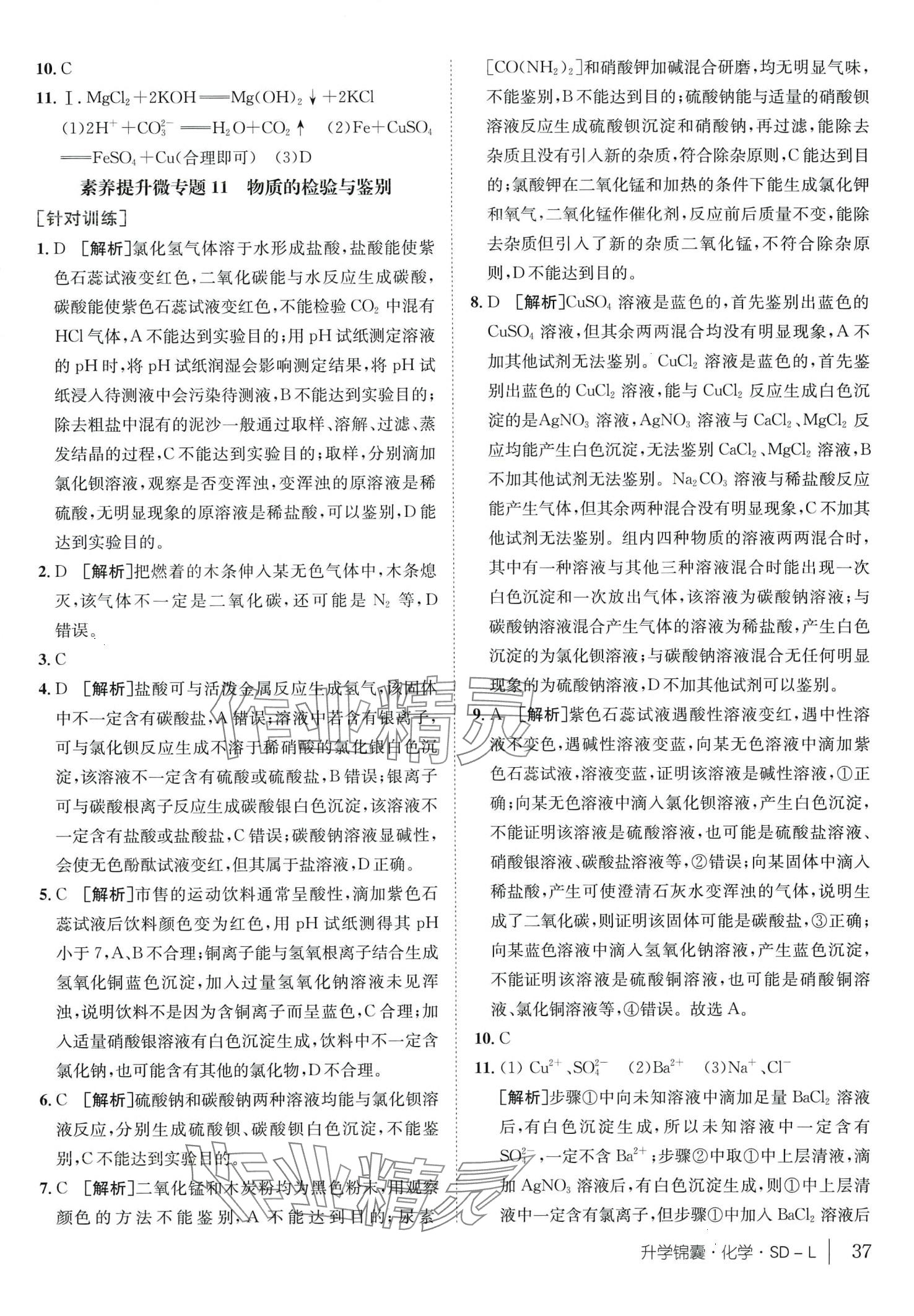 注:目前有些书本章节名称可能整理的还不是很完善,但都是按照顺序排列的,请同学们按照顺序仔细查找。练习册 2024年升学锦囊化学中考鲁教版山东专版 答案主要是用来给同学们做完题方便对答案用的,请勿直接抄袭。
