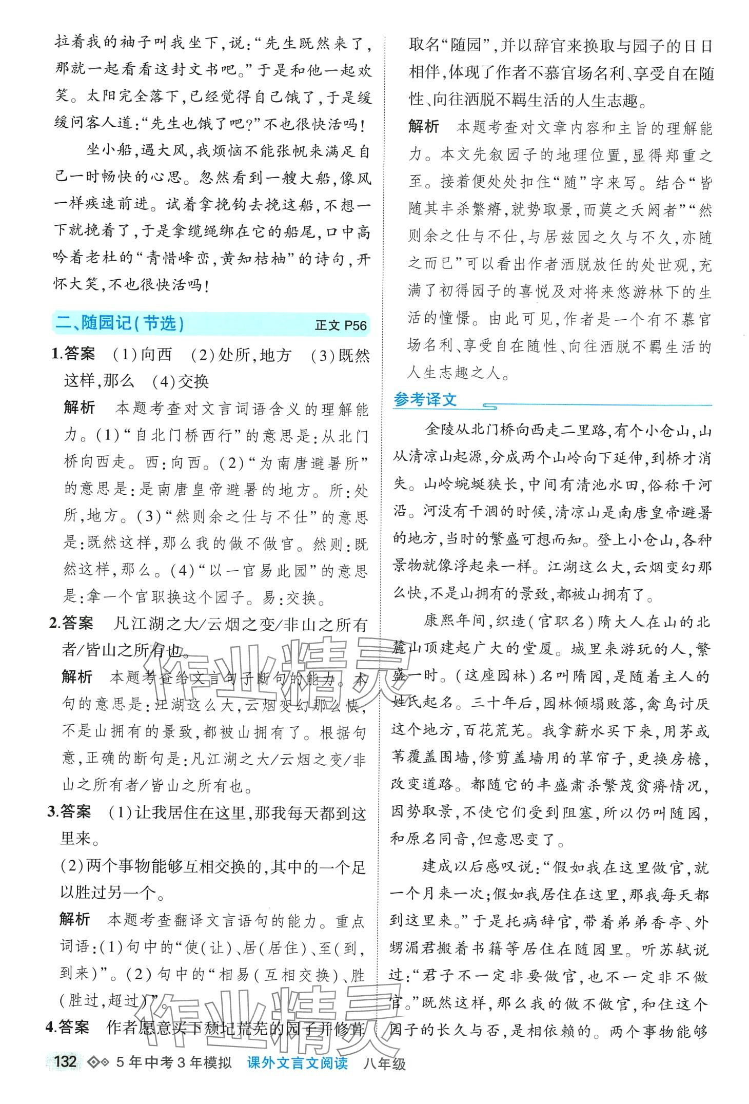2024年5年中考3年模拟课外文言文阅读八年级语文全一册人教版