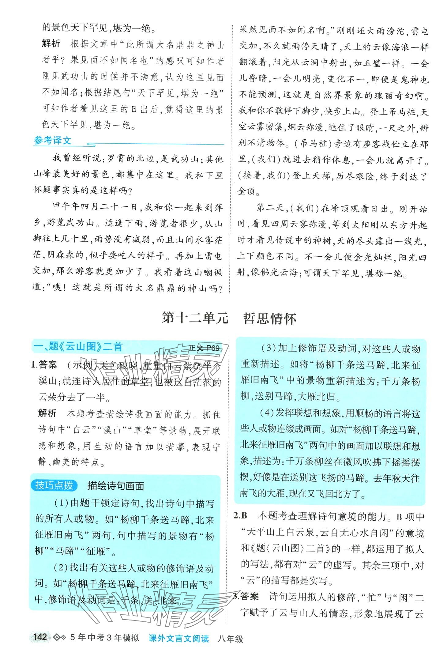 《2024年5年中考3年模拟课外文言文阅读八年级语文全一册人教版》