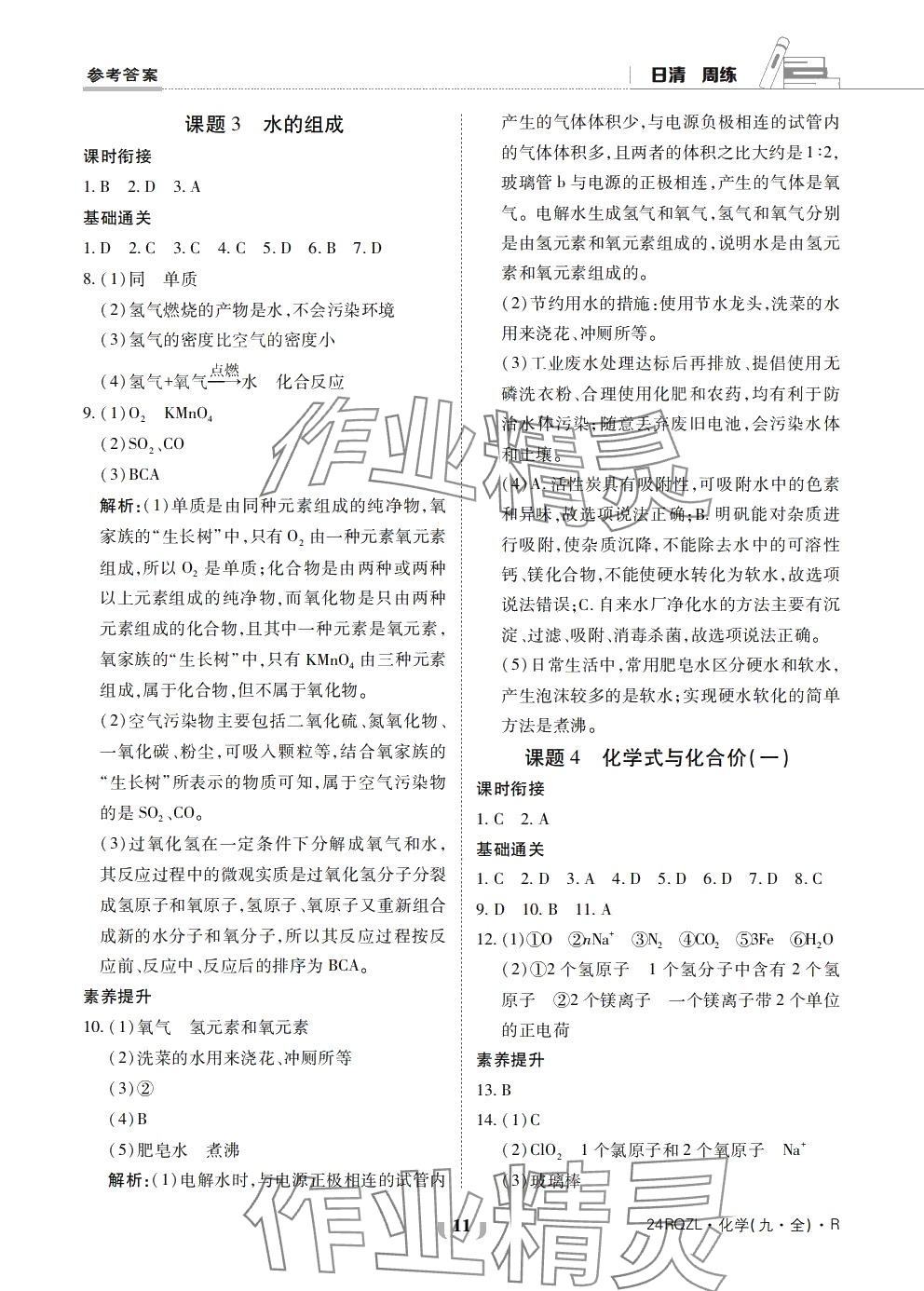 注:目前有些书本章节名称可能整理的还不是很完善,但都是按照顺序排列的,请同学们按照顺序仔细查找。练习册 2024年日清周练九年级化学全一册人教版 答案主要是用来给同学们做完题方便对答案用的,请勿直接抄袭。