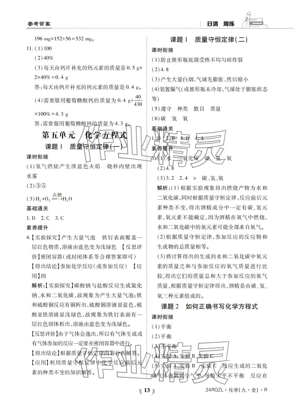 注:目前有些书本章节名称可能整理的还不是很完善,但都是按照顺序排列的,请同学们按照顺序仔细查找。练习册 2024年日清周练九年级化学全一册人教版 答案主要是用来给同学们做完题方便对答案用的,请勿直接抄袭。