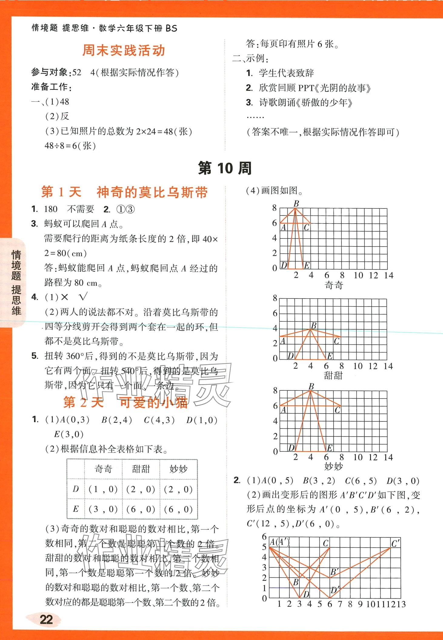 注:目前有些书本章节名称可能整理的还不是很完善,但都是按照顺序排列的,请同学们按照顺序仔细查找。练习册 2024年情境题提思维六年级数学下册北师大版 答案主要是用来给同学们做完题方便对答案用的,请勿直接抄袭。