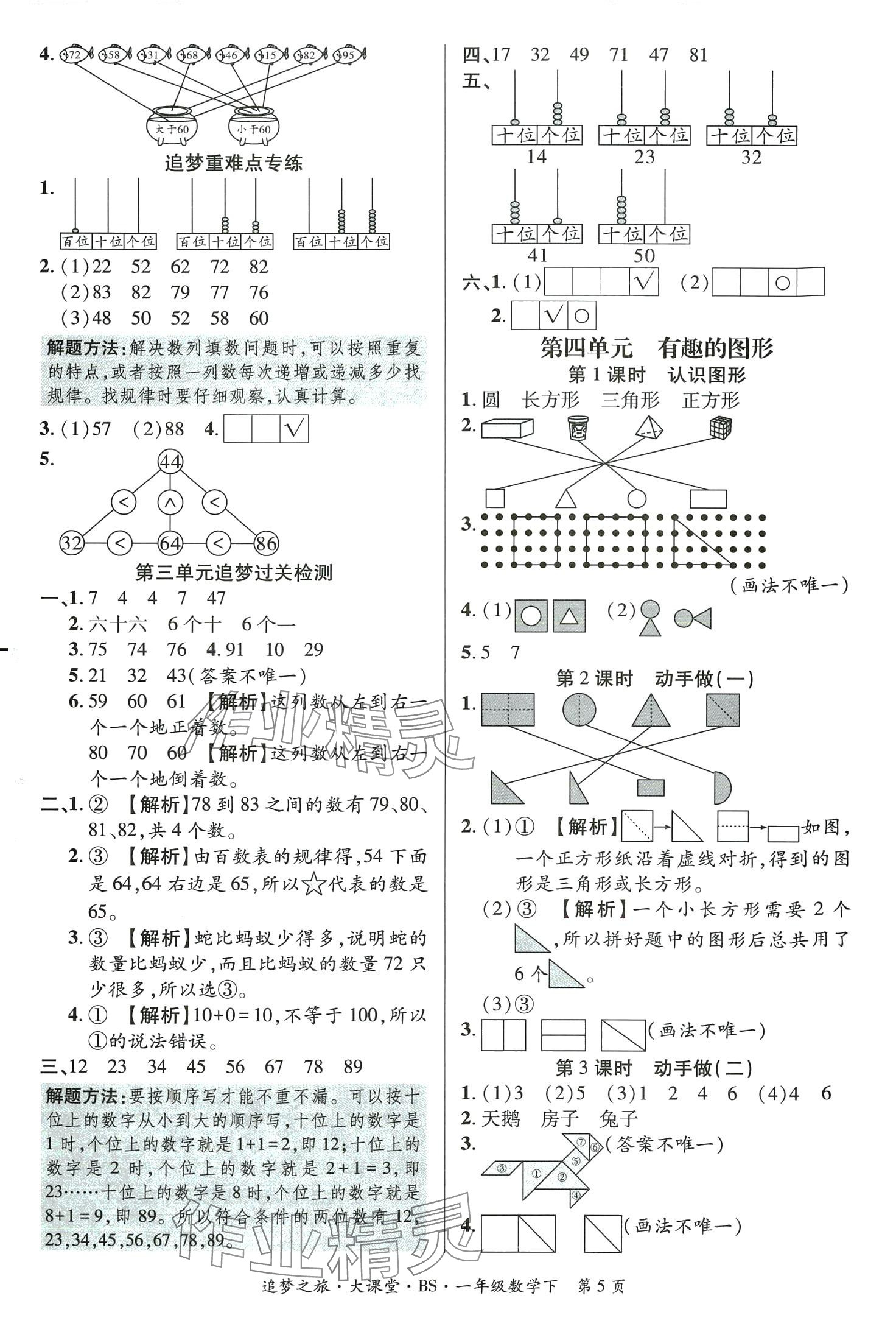 注:目前有些书本章节名称可能整理的还不是很完善,但都是按照顺序排列的,请同学们按照顺序仔细查找。练习册 2024年追梦之旅大课堂一年级数学下册北师大版 答案主要是用来给同学们做完题方便对答案用的,请勿直接抄袭。