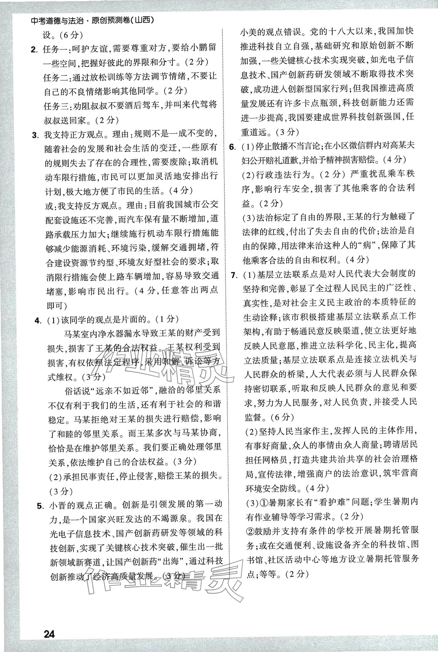 2024年万唯中考原创预测卷道德与法治中考山西专版