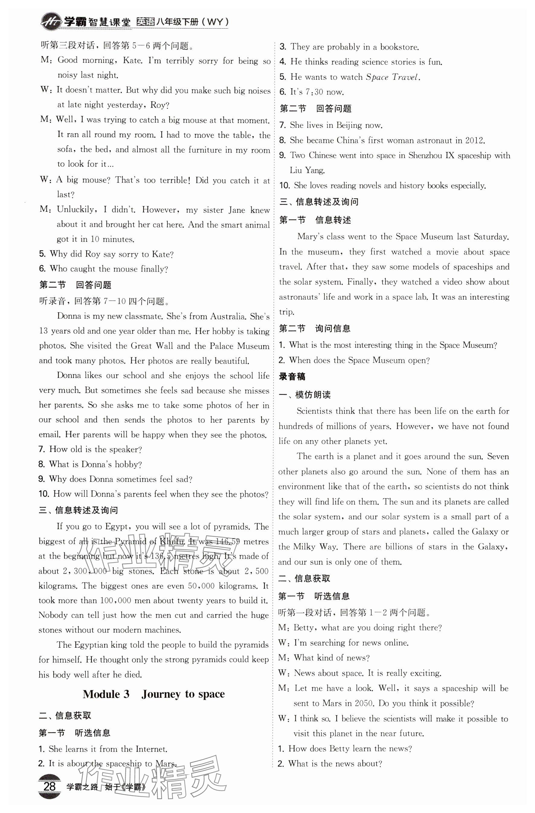 注:目前有些书本章节名称可能整理的还不是很完善,但都是按照顺序排列的,请同学们按照顺序仔细查找。练习册 2024年学霸智慧课堂八年级英语下册外研版 答案主要是用来给同学们做完题方便对答案用的,请勿直接抄袭。