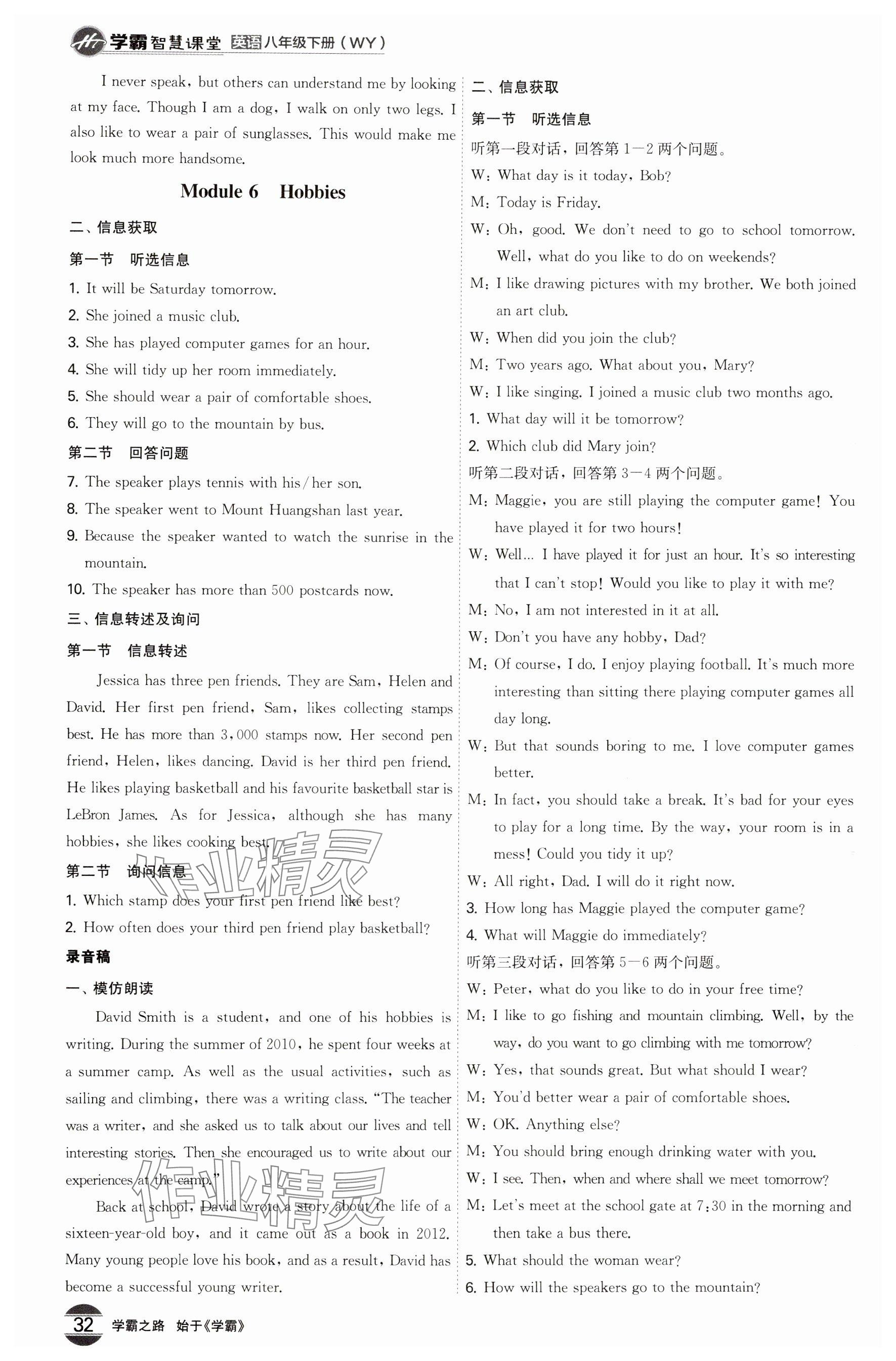 注:目前有些书本章节名称可能整理的还不是很完善,但都是按照顺序排列的,请同学们按照顺序仔细查找。练习册 2024年学霸智慧课堂八年级英语下册外研版 答案主要是用来给同学们做完题方便对答案用的,请勿直接抄袭。