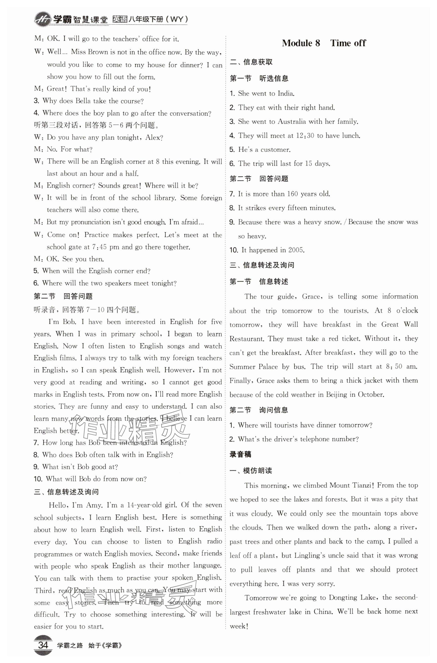 注:目前有些书本章节名称可能整理的还不是很完善,但都是按照顺序排列的,请同学们按照顺序仔细查找。练习册 2024年学霸智慧课堂八年级英语下册外研版 答案主要是用来给同学们做完题方便对答案用的,请勿直接抄袭。