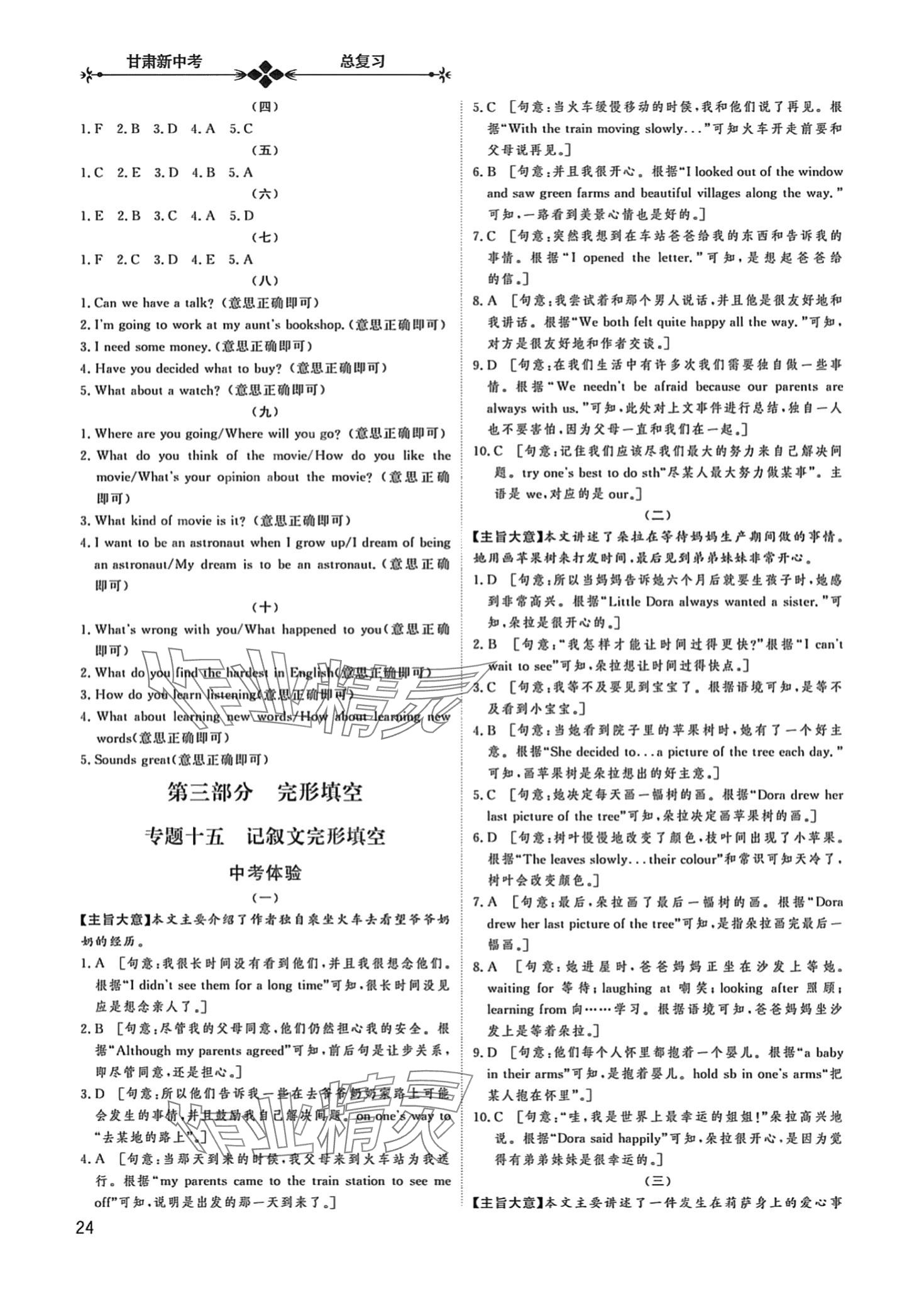 注:目前有些书本章节名称可能整理的还不是很完善,但都是按照顺序排列的,请同学们按照顺序仔细查找。练习册 2024年新中考英语甘肃专版 答案主要是用来给同学们做完题方便对答案用的,请勿直接抄袭。