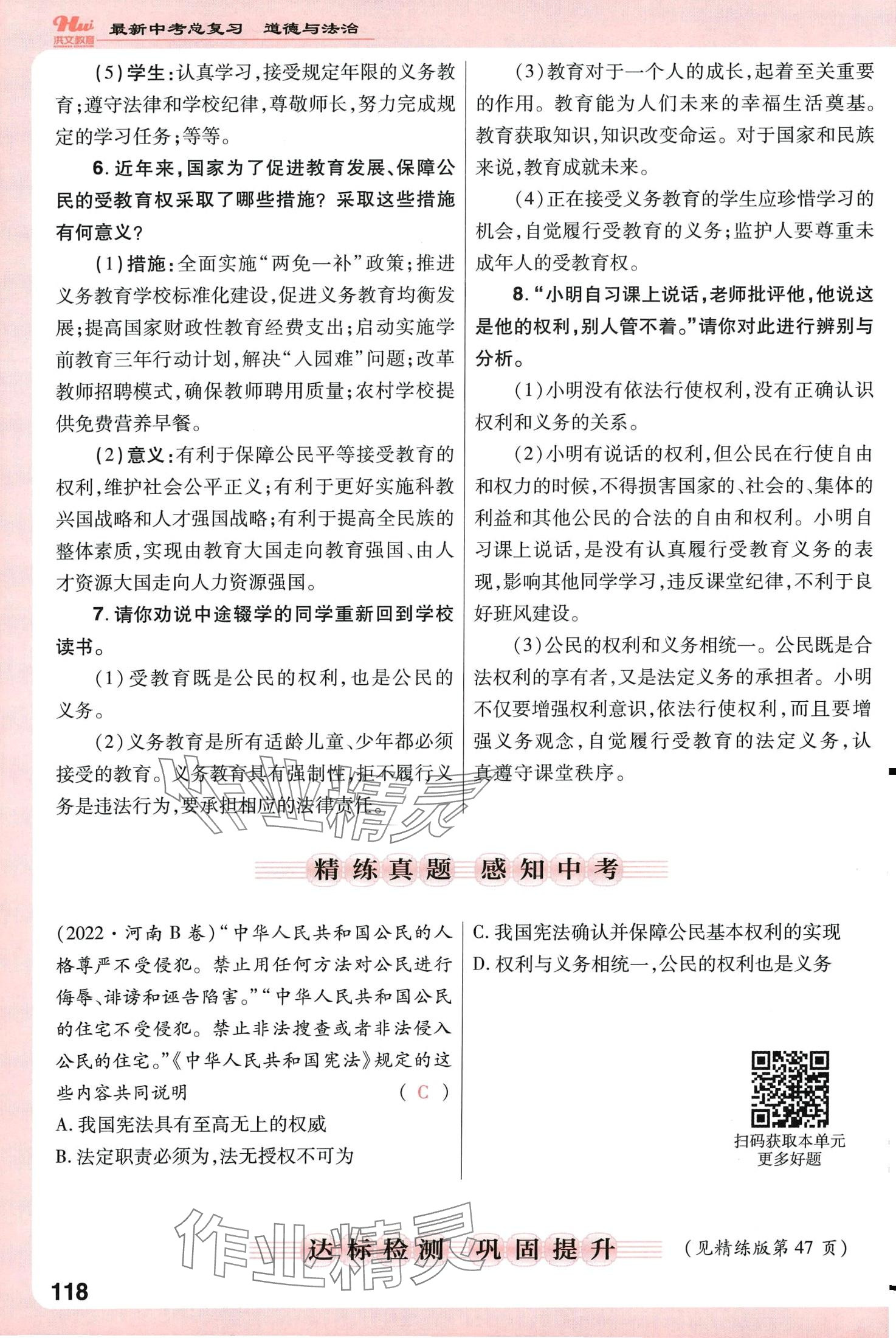 注:目前有些书本章节名称可能整理的还不是很完善,但都是按照顺序排列的,请同学们按照顺序仔细查找。练习册 2024年洪文教育最新中考道德与法治中考人教版河南专版 答案主要是用来给同学们做完题方便对答案用的,请勿直接抄袭。