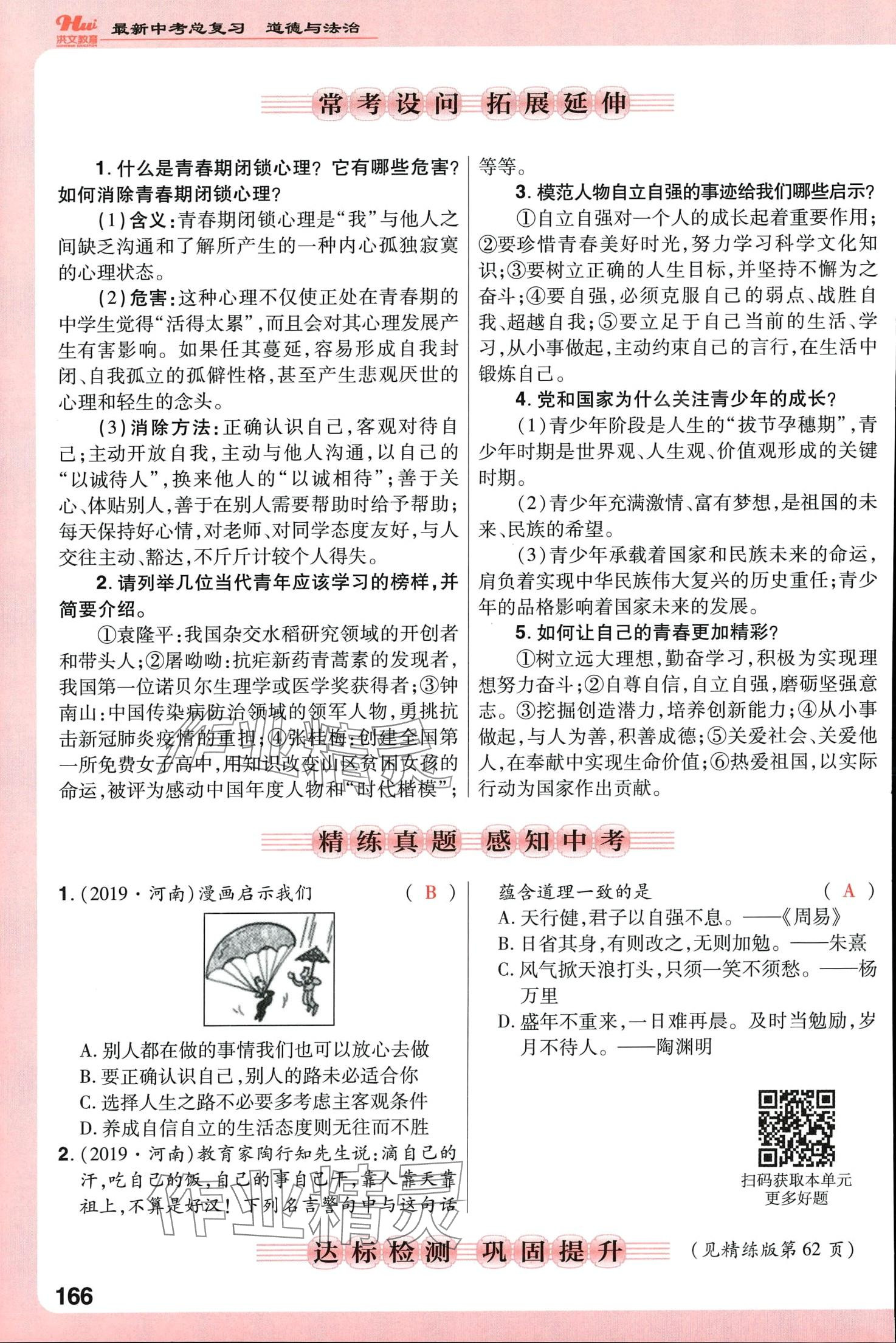 注:目前有些书本章节名称可能整理的还不是很完善,但都是按照顺序排列的,请同学们按照顺序仔细查找。练习册 2024年洪文教育最新中考道德与法治中考人教版河南专版 答案主要是用来给同学们做完题方便对答案用的,请勿直接抄袭。