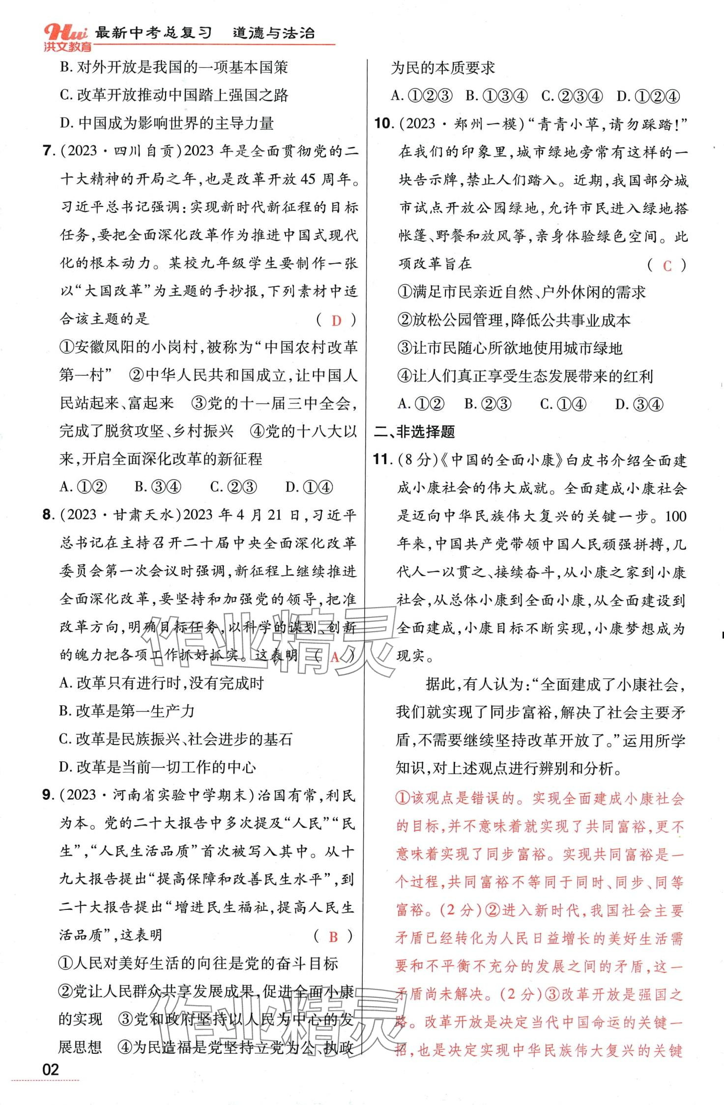 注:目前有些书本章节名称可能整理的还不是很完善,但都是按照顺序排列的,请同学们按照顺序仔细查找。练习册 2024年洪文教育最新中考道德与法治中考人教版河南专版 答案主要是用来给同学们做完题方便对答案用的,请勿直接抄袭。