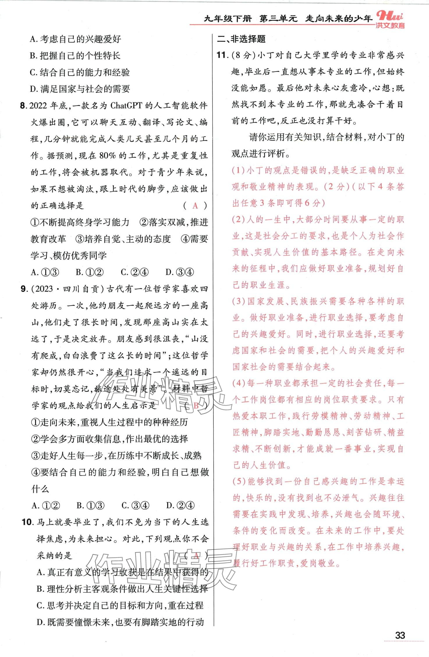 注:目前有些书本章节名称可能整理的还不是很完善,但都是按照顺序排列的,请同学们按照顺序仔细查找。练习册 2024年洪文教育最新中考道德与法治中考人教版河南专版 答案主要是用来给同学们做完题方便对答案用的,请勿直接抄袭。