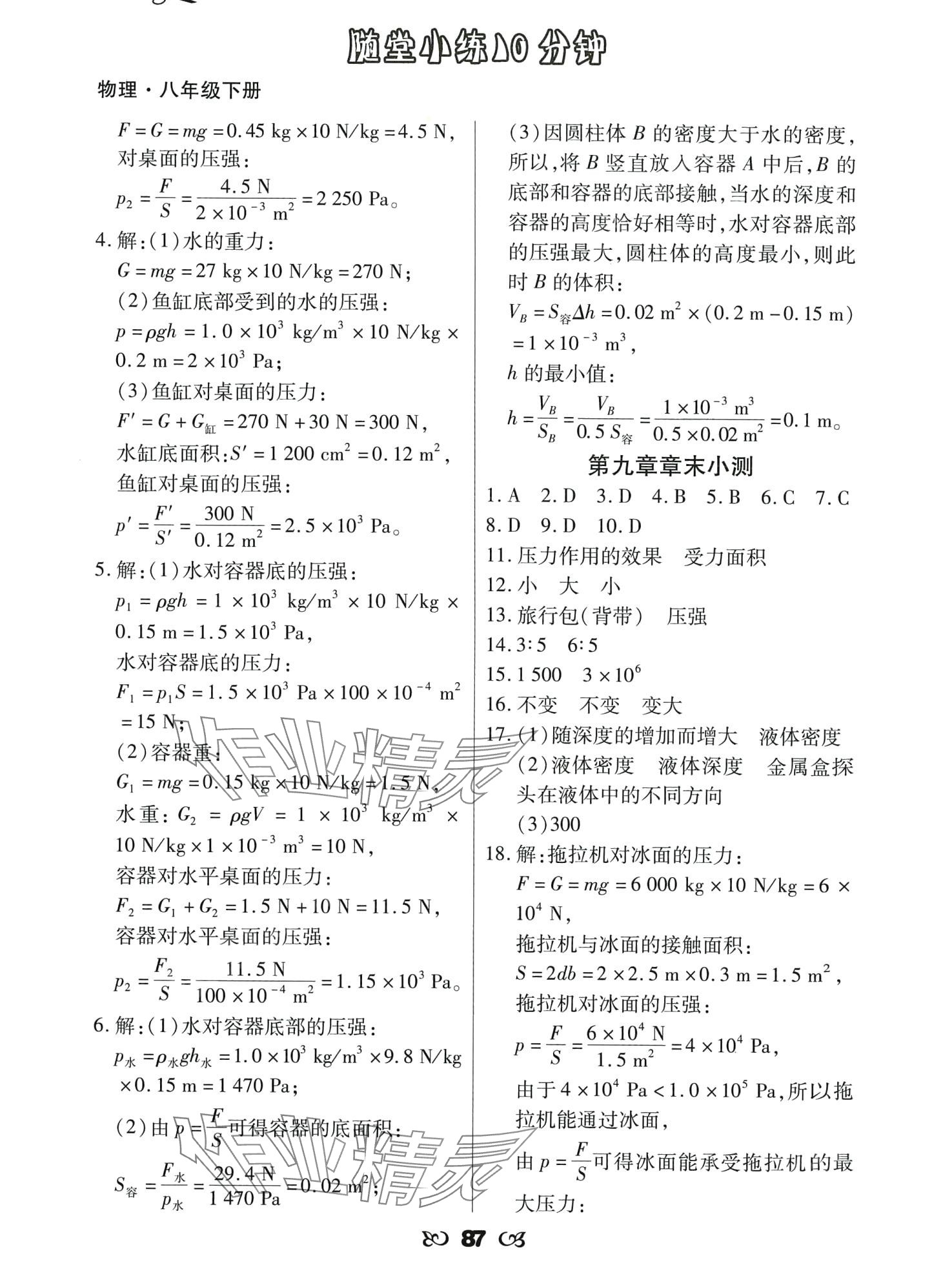 注:目前有些书本章节名称可能整理的还不是很完善,但都是按照顺序排列的,请同学们按照顺序仔细查找。练习册 2024年千里马随堂小练10分钟八年级物理下册 答案主要是用来给同学们做完题方便对答案用的,请勿直接抄袭。