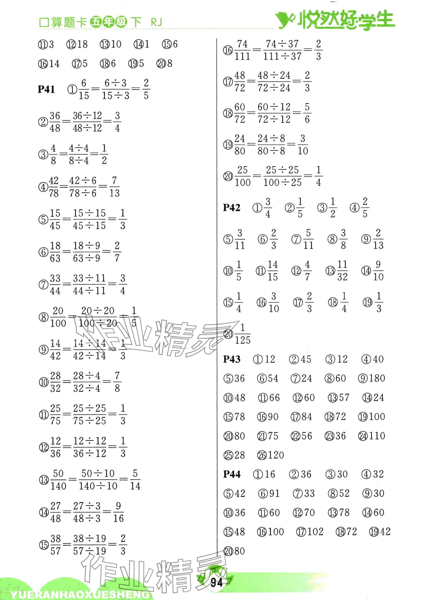 注:目前有些书本章节名称可能整理的还不是很完善,但都是按照顺序排列的,请同学们按照顺序仔细查找。练习册 2024年悦然好学生口算题卡五年级数学下册人教版 答案主要是用来给同学们做完题方便对答案用的,请勿直接抄袭。