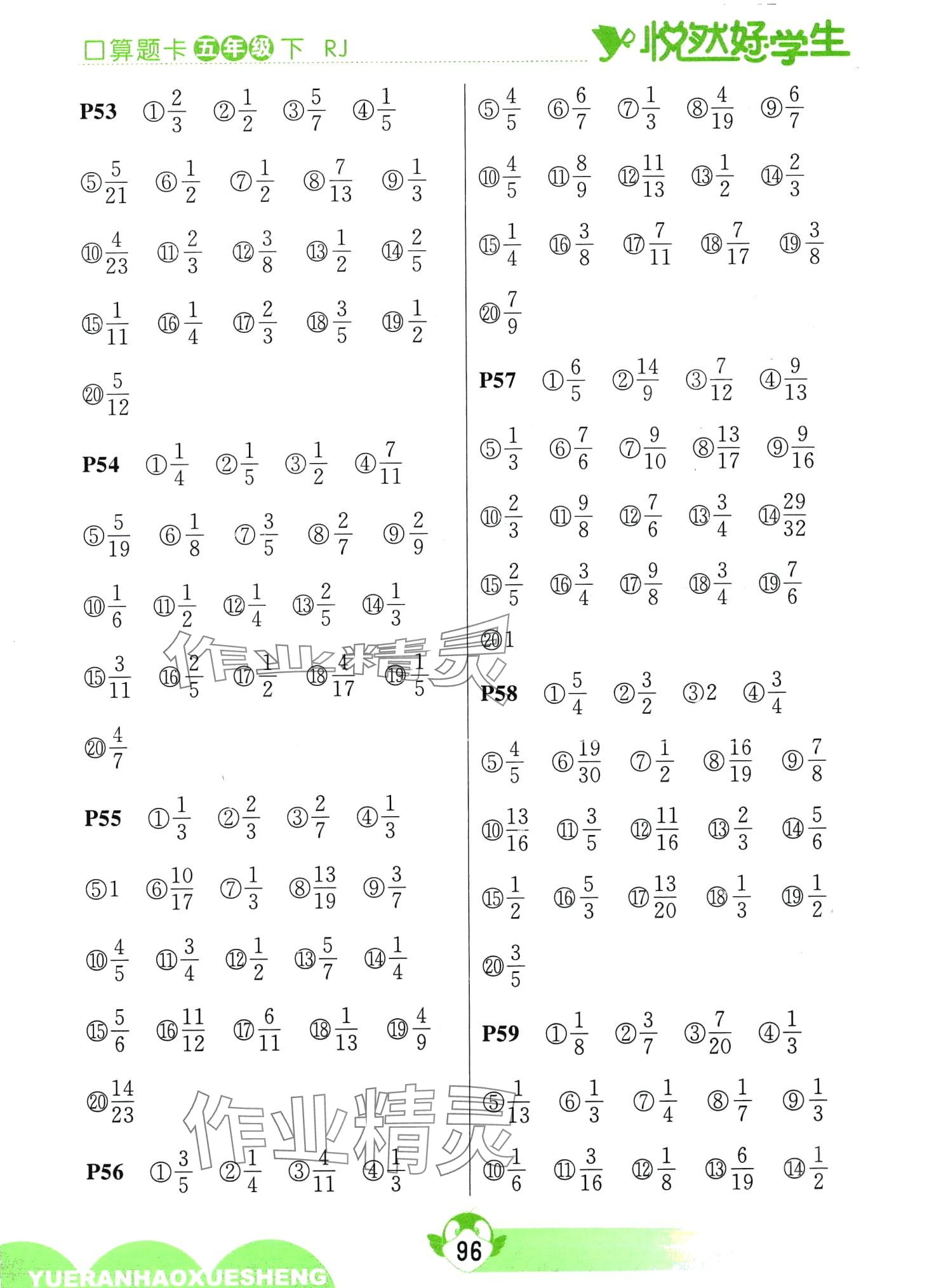 注:目前有些书本章节名称可能整理的还不是很完善,但都是按照顺序排列的,请同学们按照顺序仔细查找。练习册 2024年悦然好学生口算题卡五年级数学下册人教版 答案主要是用来给同学们做完题方便对答案用的,请勿直接抄袭。