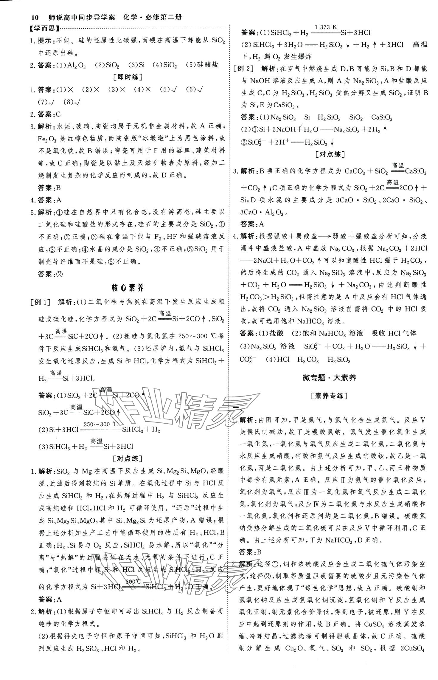 注:目前有些书本章节名称可能整理的还不是很完善,但都是按照顺序排列的,请同学们按照顺序仔细查找。练习册 2024年师说高中化学必修第二册人教版 答案主要是用来给同学们做完题方便对答案用的,请勿直接抄袭。