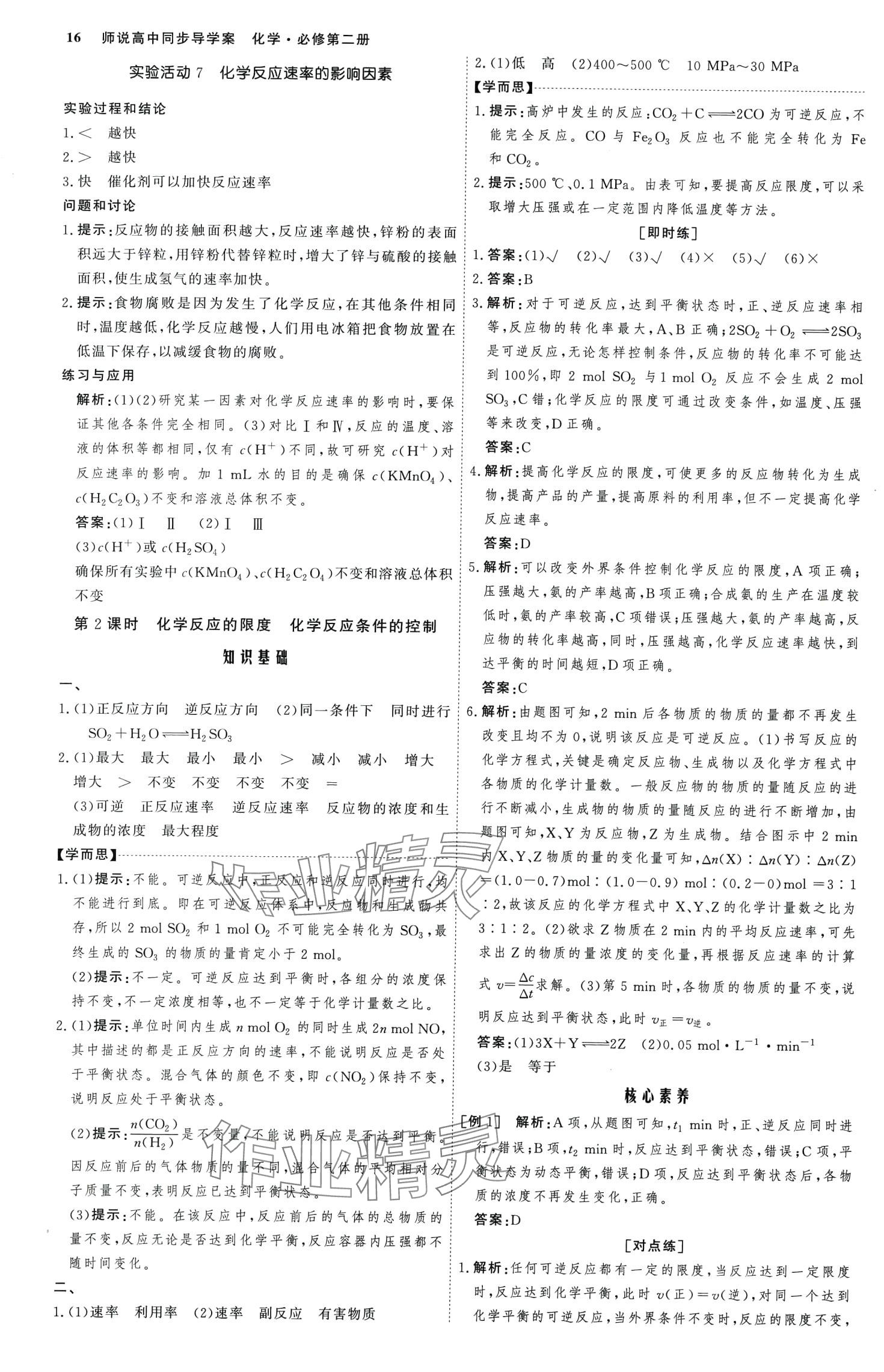 注:目前有些书本章节名称可能整理的还不是很完善,但都是按照顺序排列的,请同学们按照顺序仔细查找。练习册 2024年师说高中化学必修第二册人教版 答案主要是用来给同学们做完题方便对答案用的,请勿直接抄袭。