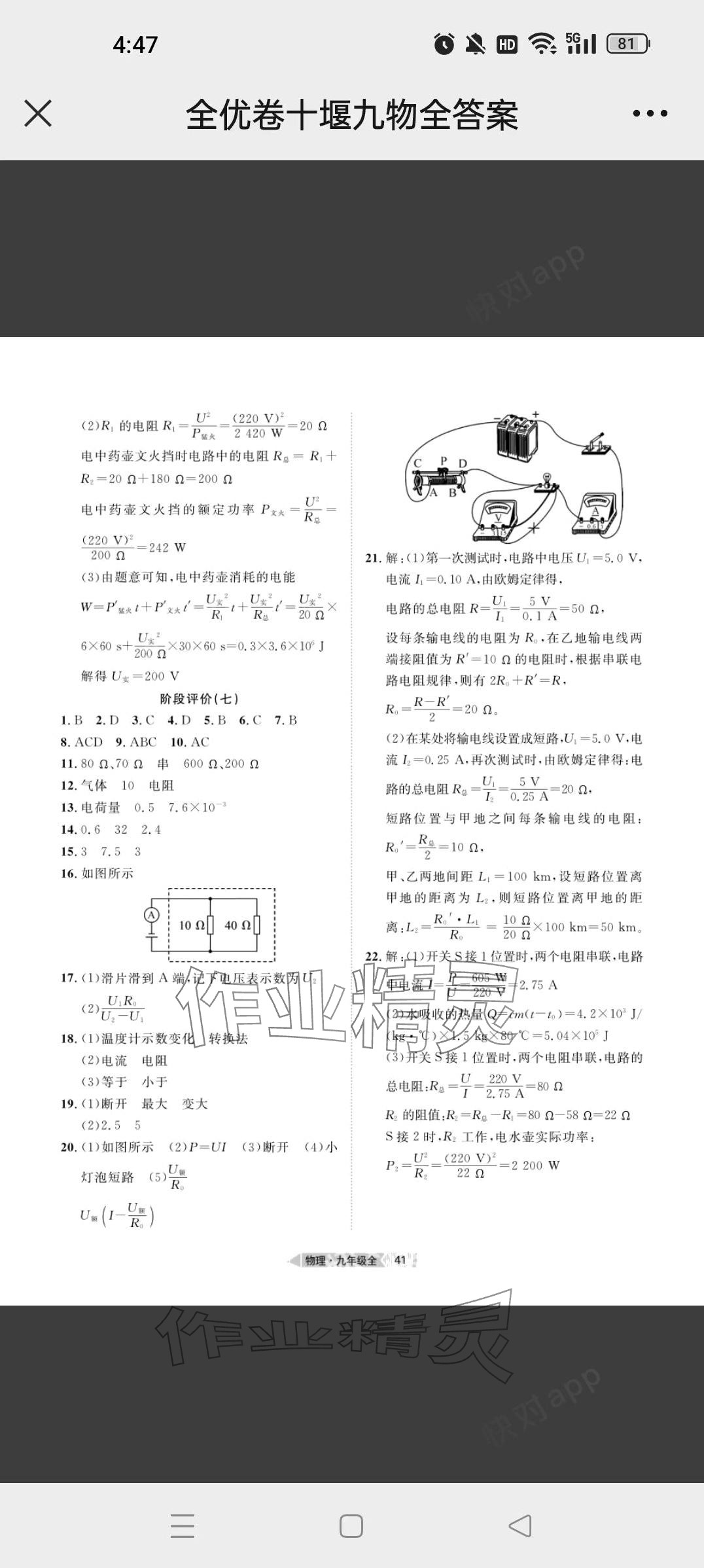 注:目前有些书本章节名称可能整理的还不是很完善,但都是按照顺序排列的,请同学们按照顺序仔细查找。练习册 2024年全优标准卷九年级物理全一册 答案主要是用来给同学们做完题方便对答案用的,请勿直接抄袭。