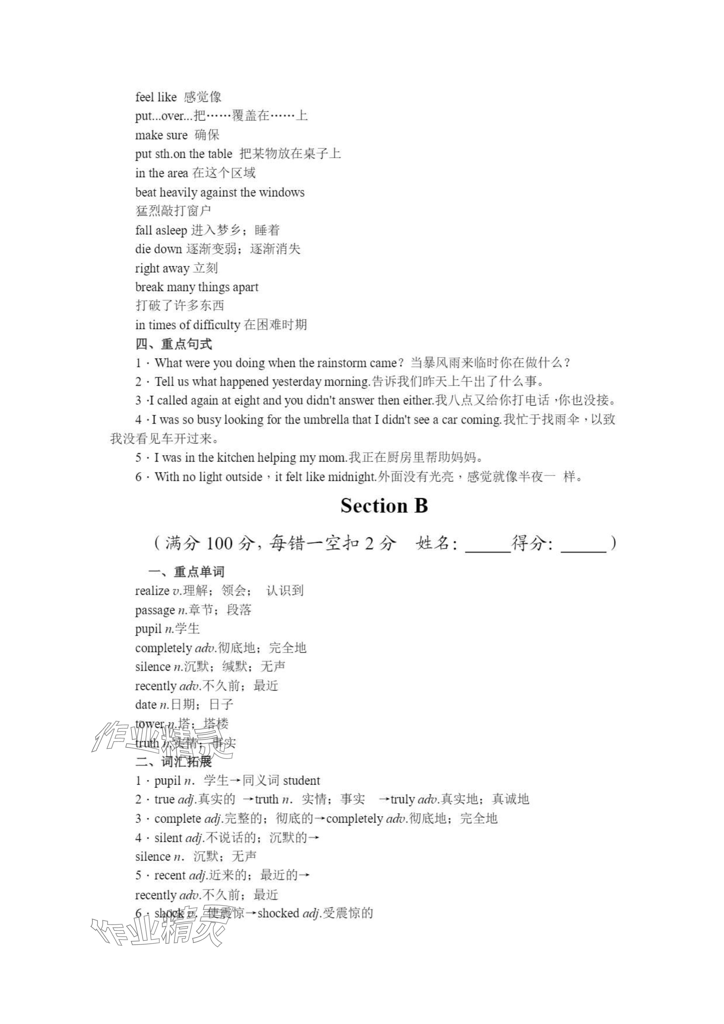 注:目前有些书本章节名称可能整理的还不是很完善,但都是按照顺序排列的,请同学们按照顺序仔细查找。练习册 2024年课时掌控八年级英语下册人教版 答案主要是用来给同学们做完题方便对答案用的,请勿直接抄袭。