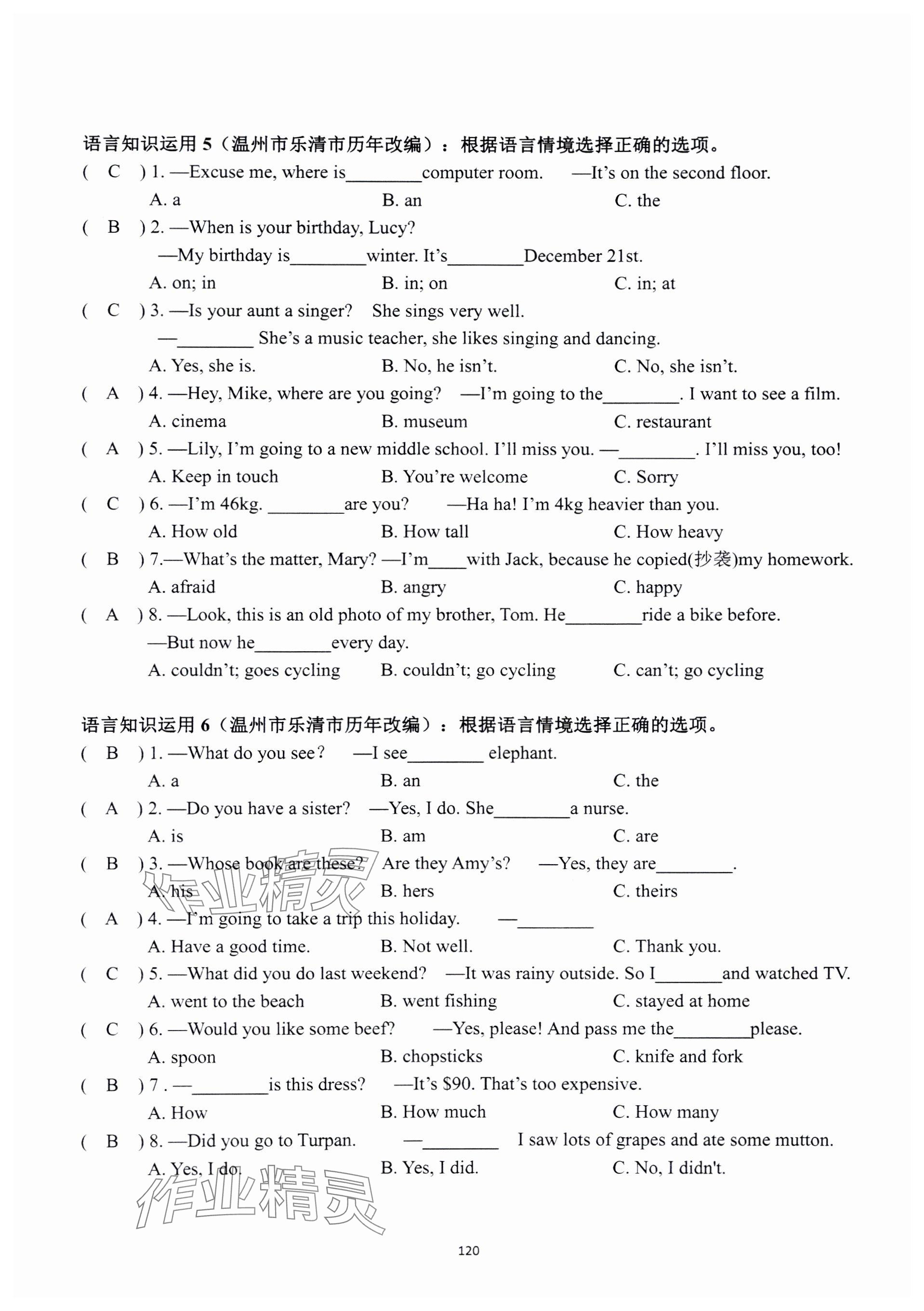 参考答案第120页