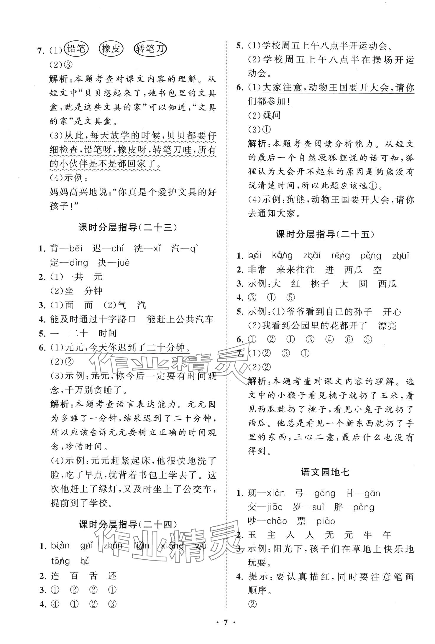 2024年同步练习册分层指导一年级语文下册人教版五四制