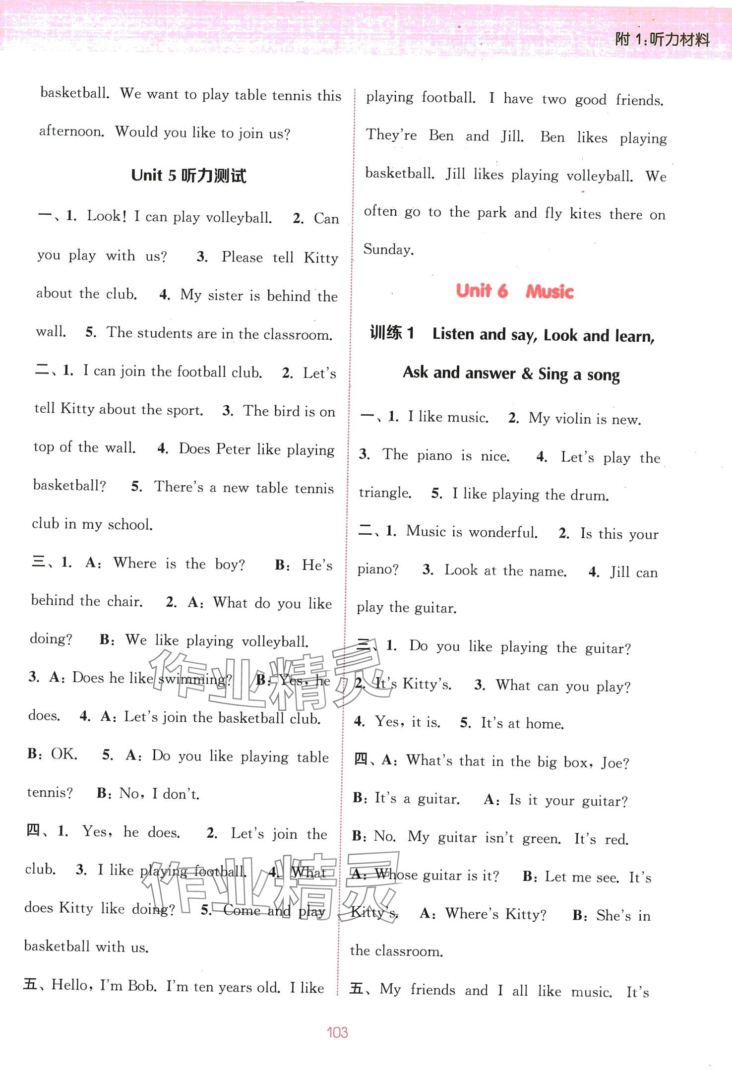 注:目前有些书本章节名称可能整理的还不是很完善,但都是按照顺序排列的,请同学们按照顺序仔细查找。练习册 2024年通城学典小学英语听力能手四年级下册沪教版 答案主要是用来给同学们做完题方便对答案用的,请勿直接抄袭。