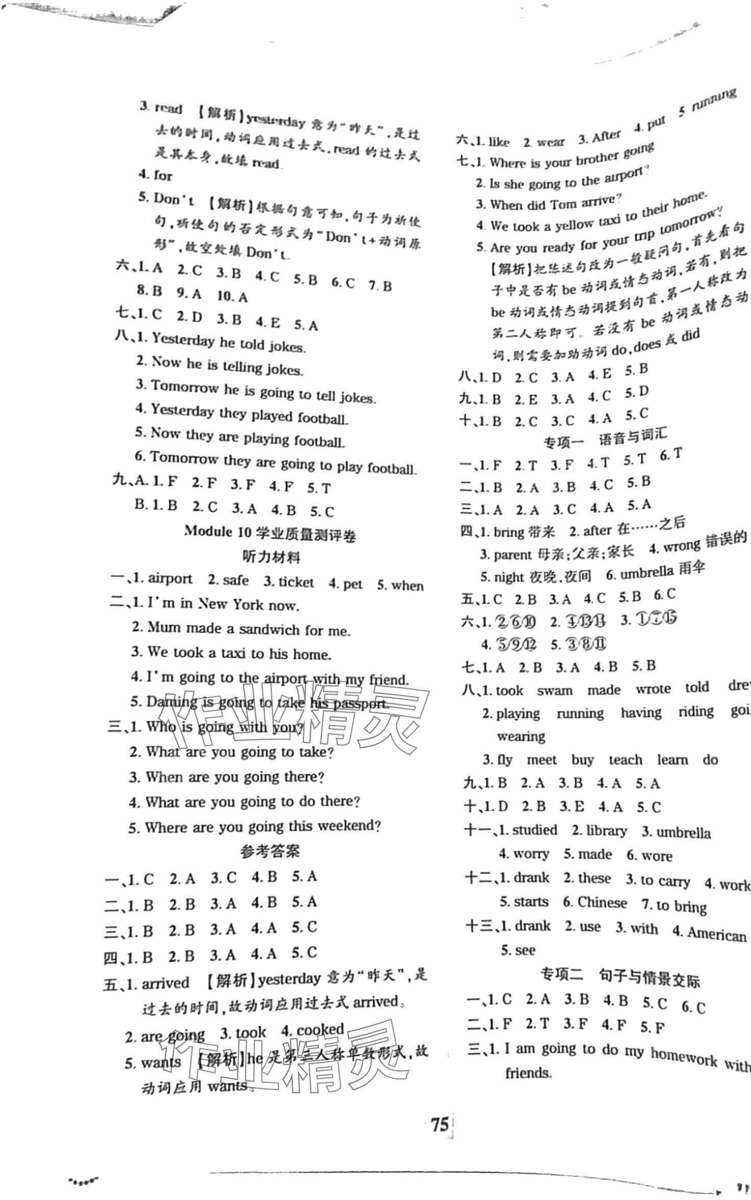 注:目前有些书本章节名称可能整理的还不是很完善,但都是按照顺序排列的,请同学们按照顺序仔细查找。练习册 2024年全程无忧提优卷五年级英语下册外研版 答案主要是用来给同学们做完题方便对答案用的,请勿直接抄袭。