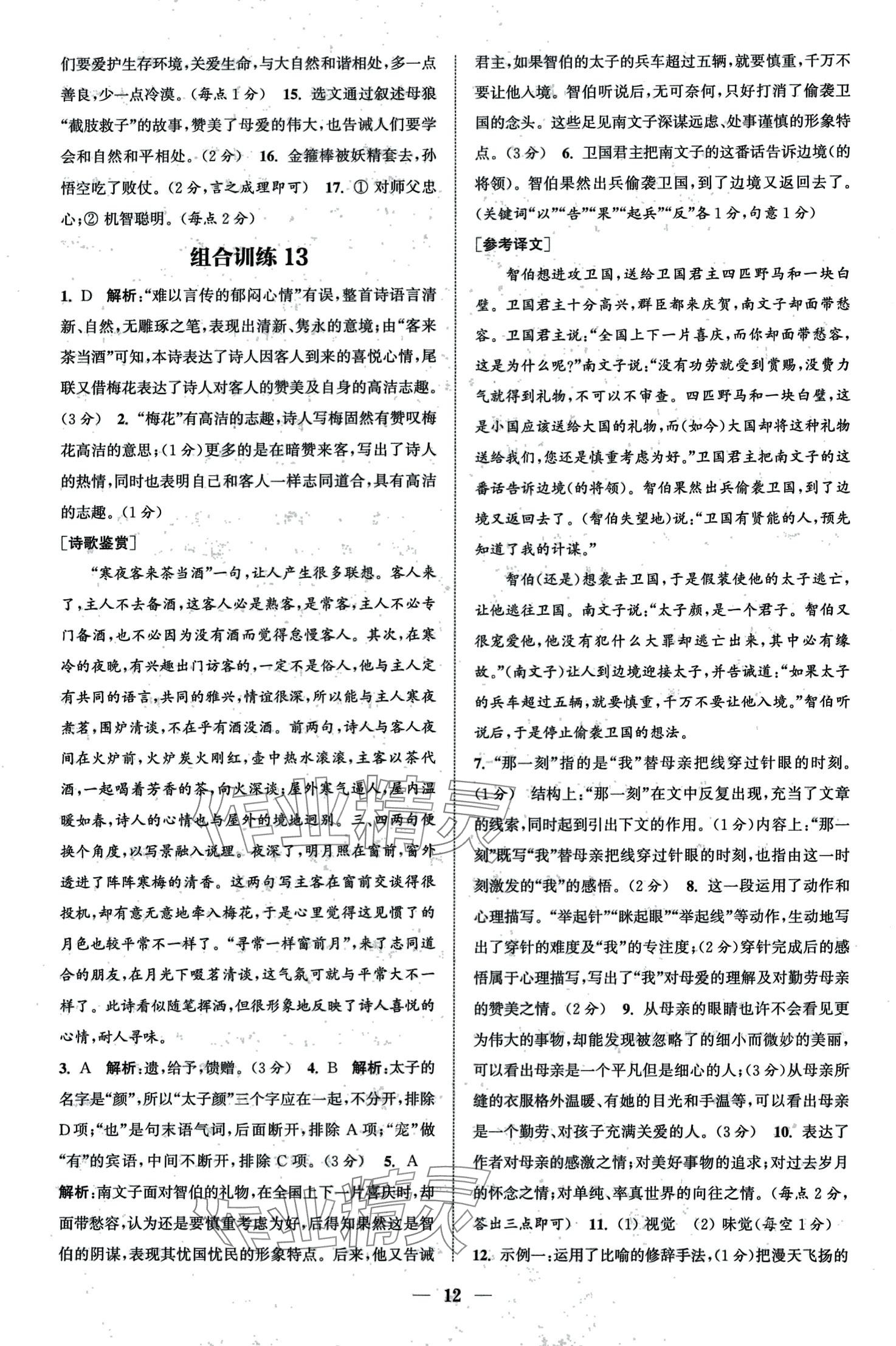 注:目前有些书本章节名称可能整理的还不是很完善,但都是按照顺序排列的,请同学们按照顺序仔细查找。练习册 2024年通城学典组合训练七年级语文全一册人教版 答案主要是用来给同学们做完题方便对答案用的,请勿直接抄袭。