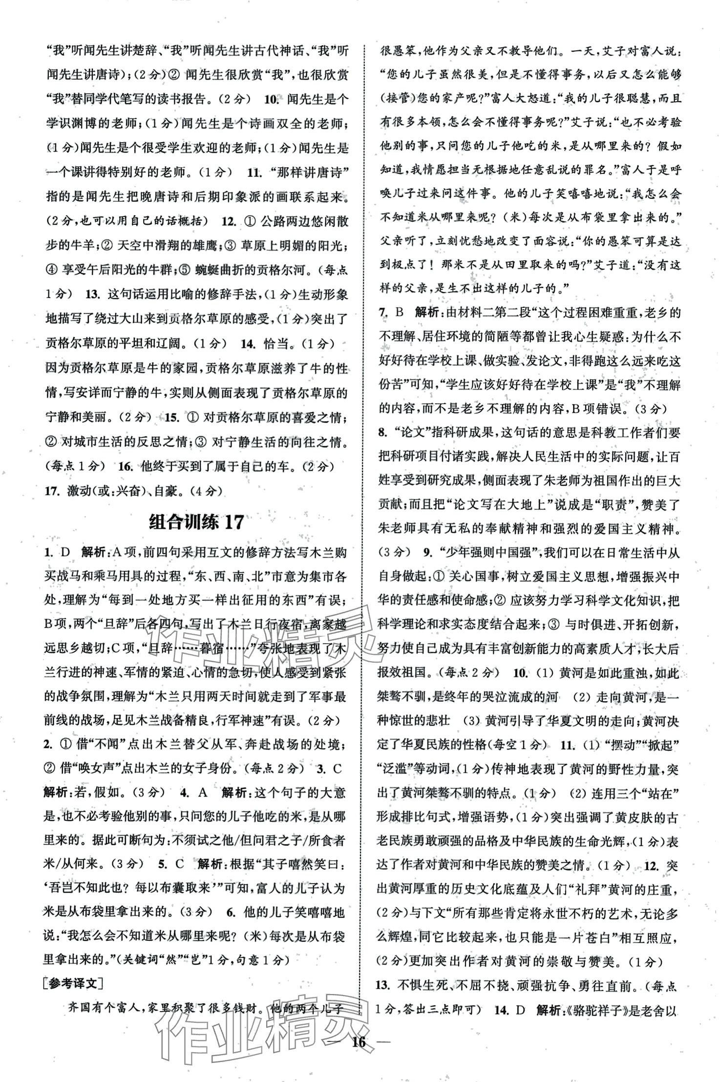 注:目前有些书本章节名称可能整理的还不是很完善,但都是按照顺序排列的,请同学们按照顺序仔细查找。练习册 2024年通城学典组合训练七年级语文全一册人教版 答案主要是用来给同学们做完题方便对答案用的,请勿直接抄袭。