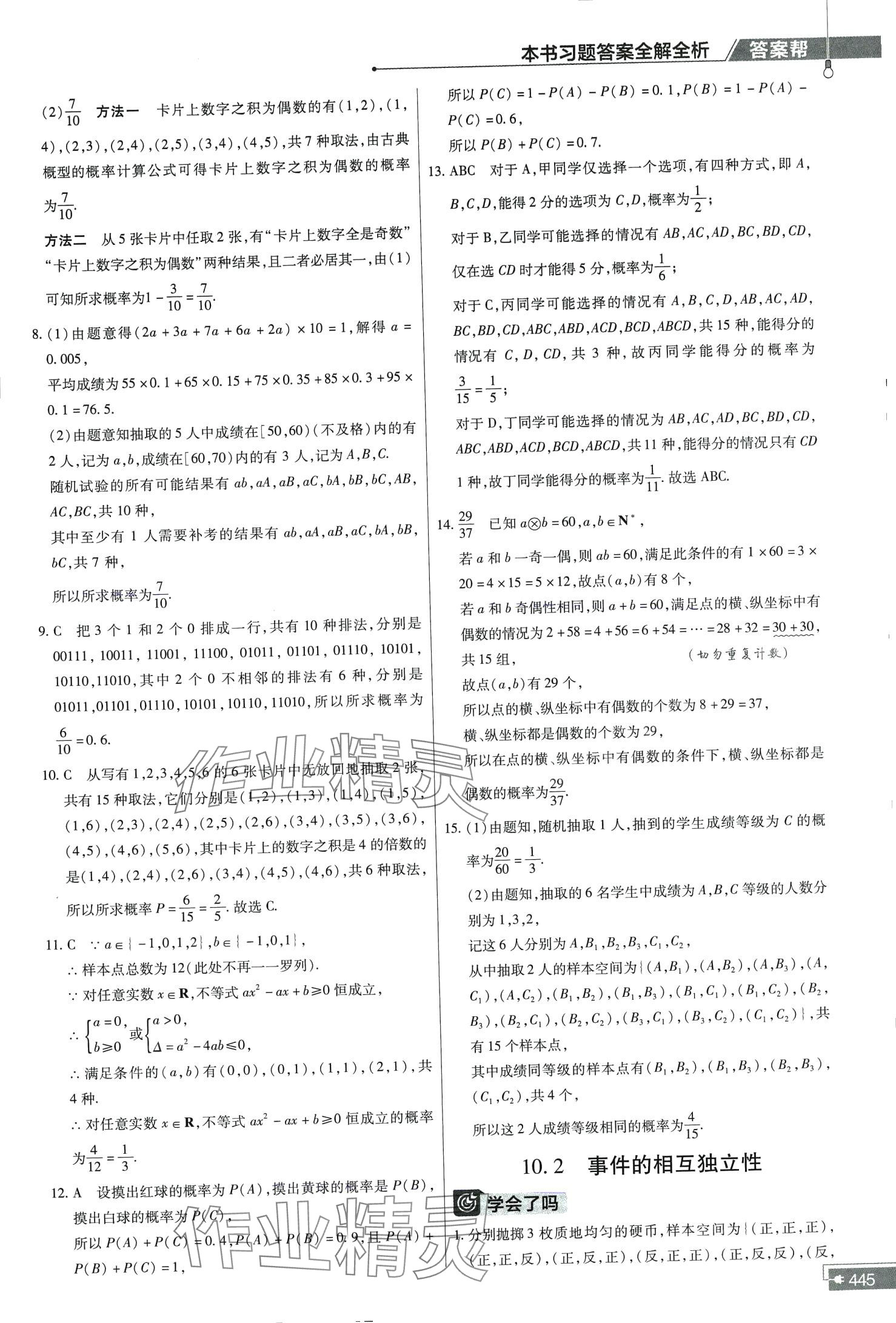 注:目前有些书本章节名称可能整理的还不是很完善,但都是按照顺序排列的,请同学们按照顺序仔细查找。练习册 2024年教材帮高中数学必修第二册人教版A 答案主要是用来给同学们做完题方便对答案用的,请勿直接抄袭。