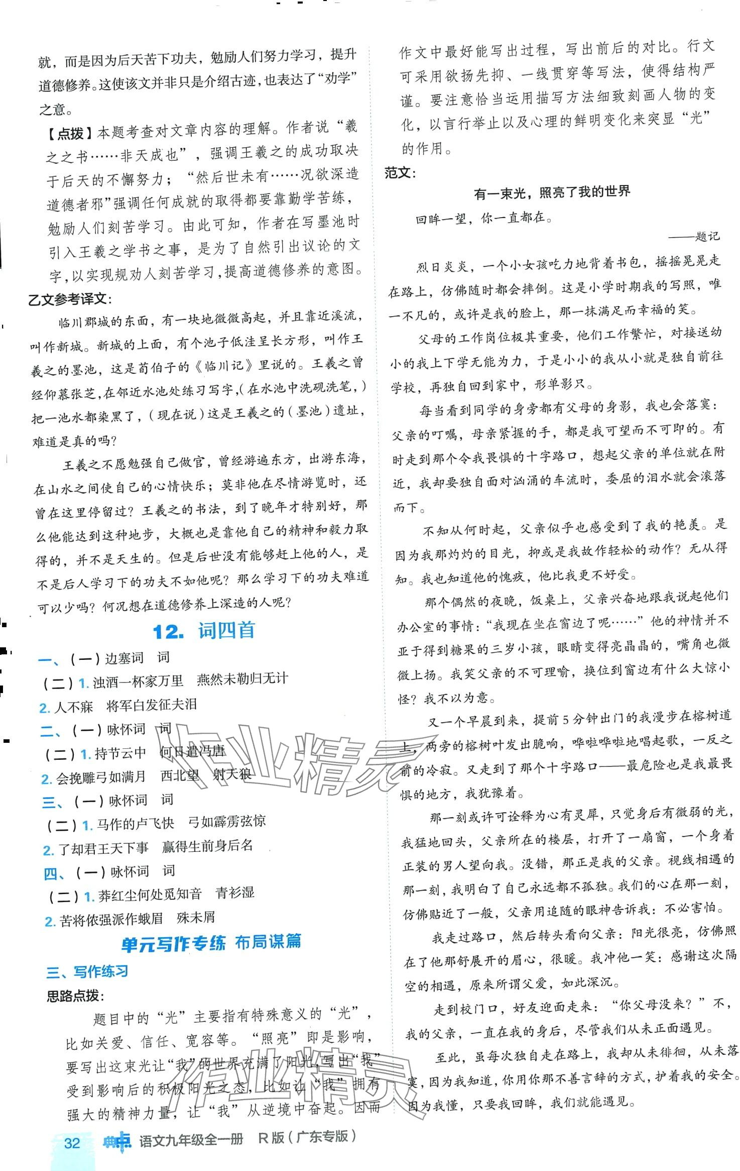 注:目前有些书本章节名称可能整理的还不是很完善,但都是按照顺序排列的,请同学们按照顺序仔细查找。练习册 2024年综合应用创新题典中点九年级语文全一册人教版广东专版 答案主要是用来给同学们做完题方便对答案用的,请勿直接抄袭。