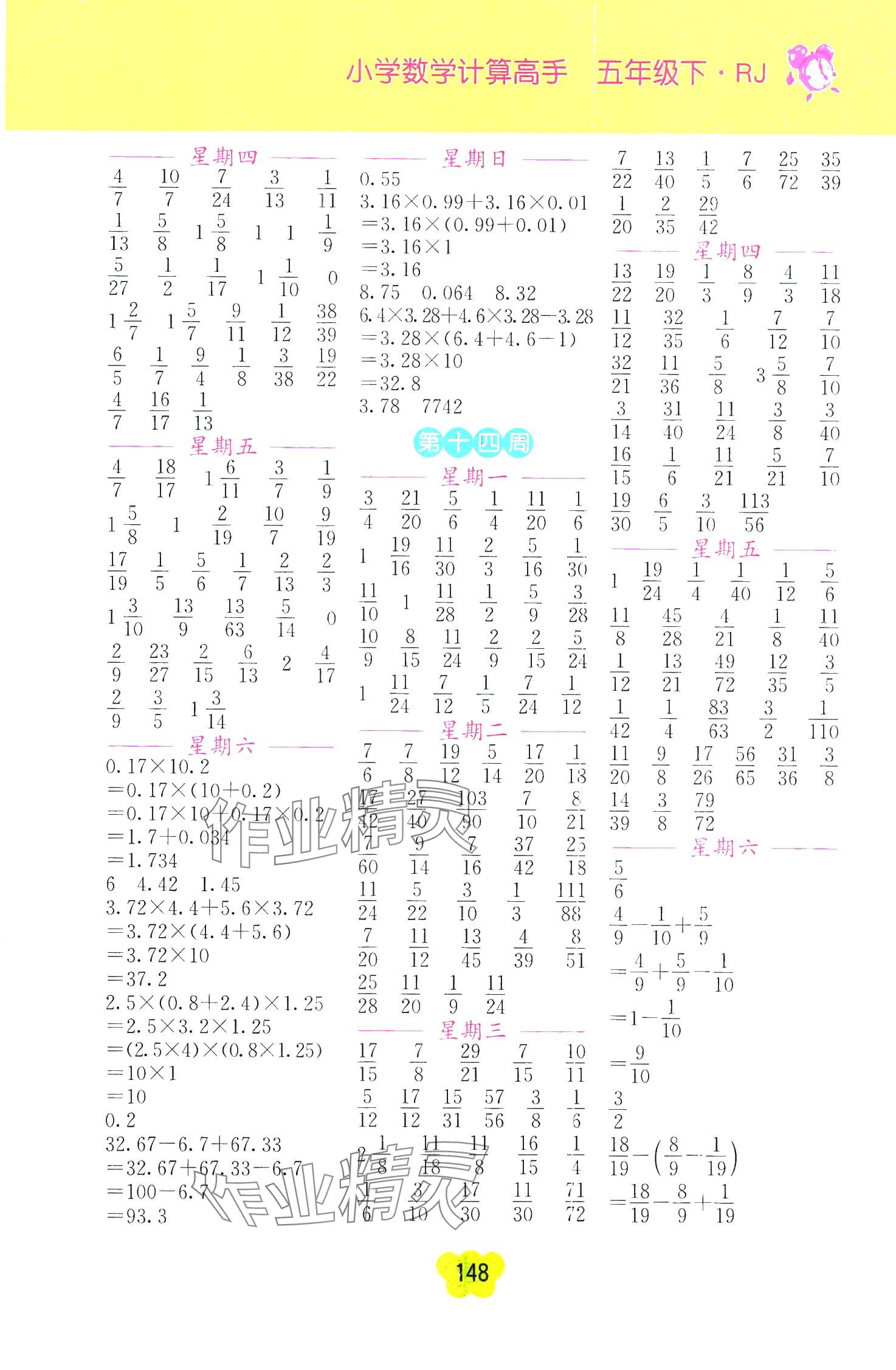 《2024年超能学典小学数学计算高手五年级下册人教版》