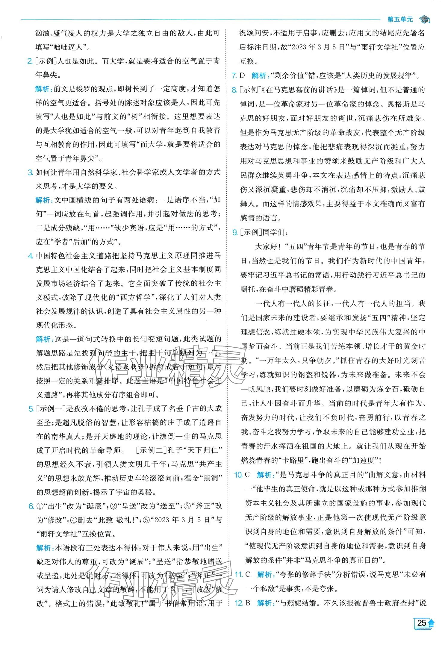 注:目前有些书本章节名称可能整理的还不是很完善,但都是按照顺序排列的,请同学们按照顺序仔细查找。练习册 2024年实验班全程提优训练高中语文必修下册人教版 答案主要是用来给同学们做完题方便对答案用的,请勿直接抄袭。
