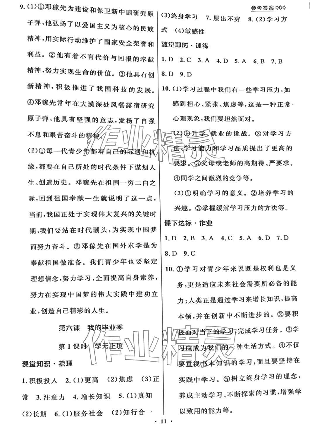 注:目前有些书本章节名称可能整理的还不是很完善,但都是按照顺序排列的,请同学们按照顺序仔细查找。练习册 2024年学生成长册九年级道德与法治下册人教版 答案主要是用来给同学们做完题方便对答案用的,请勿直接抄袭。