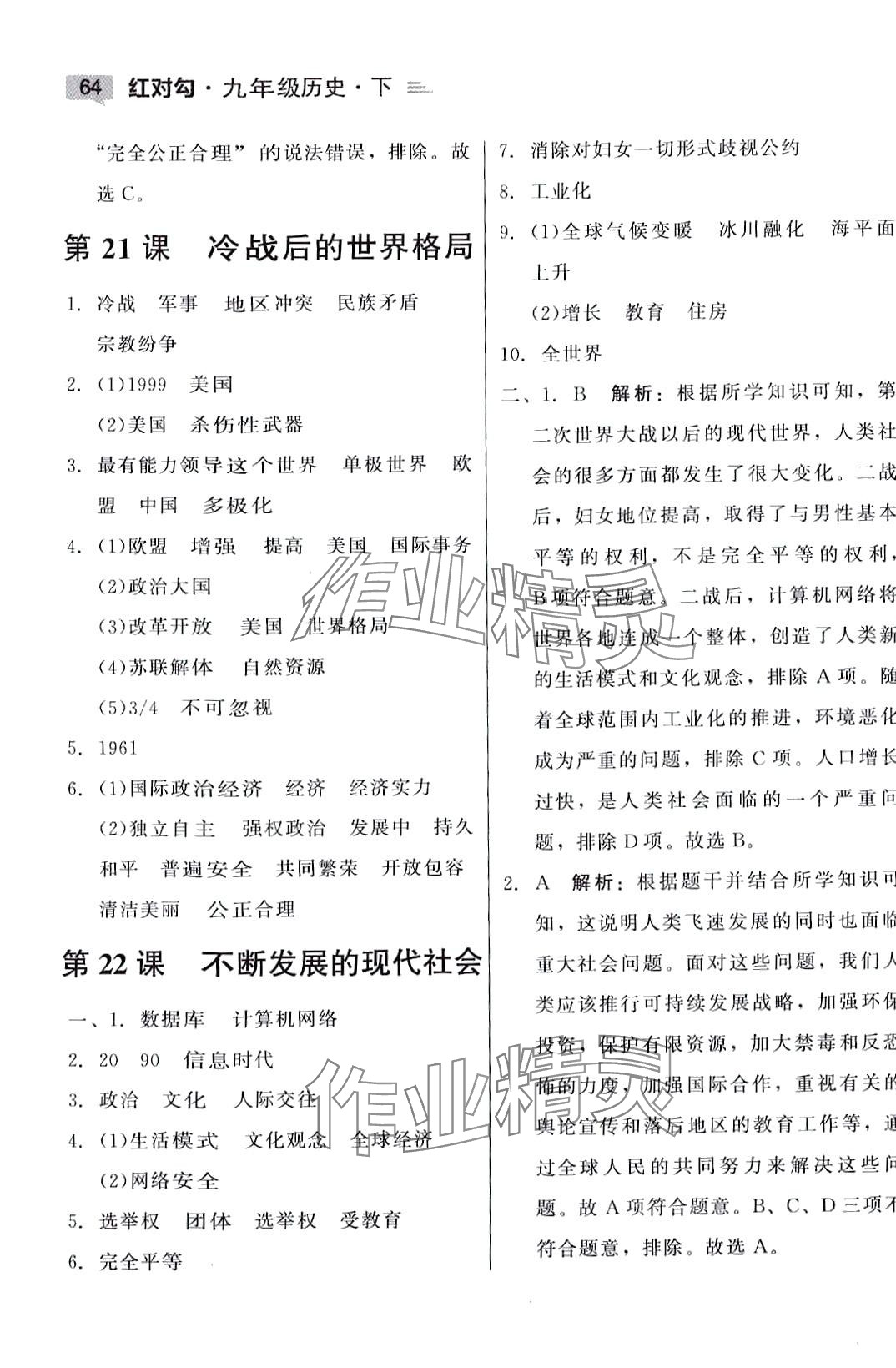注:目前有些书本章节名称可能整理的还不是很完善,但都是按照顺序排列的,请同学们按照顺序仔细查找。练习册 2024年红对勾45分钟作业与单元评估九年级历史下册人教版 答案主要是用来给同学们做完题方便对答案用的,请勿直接抄袭。