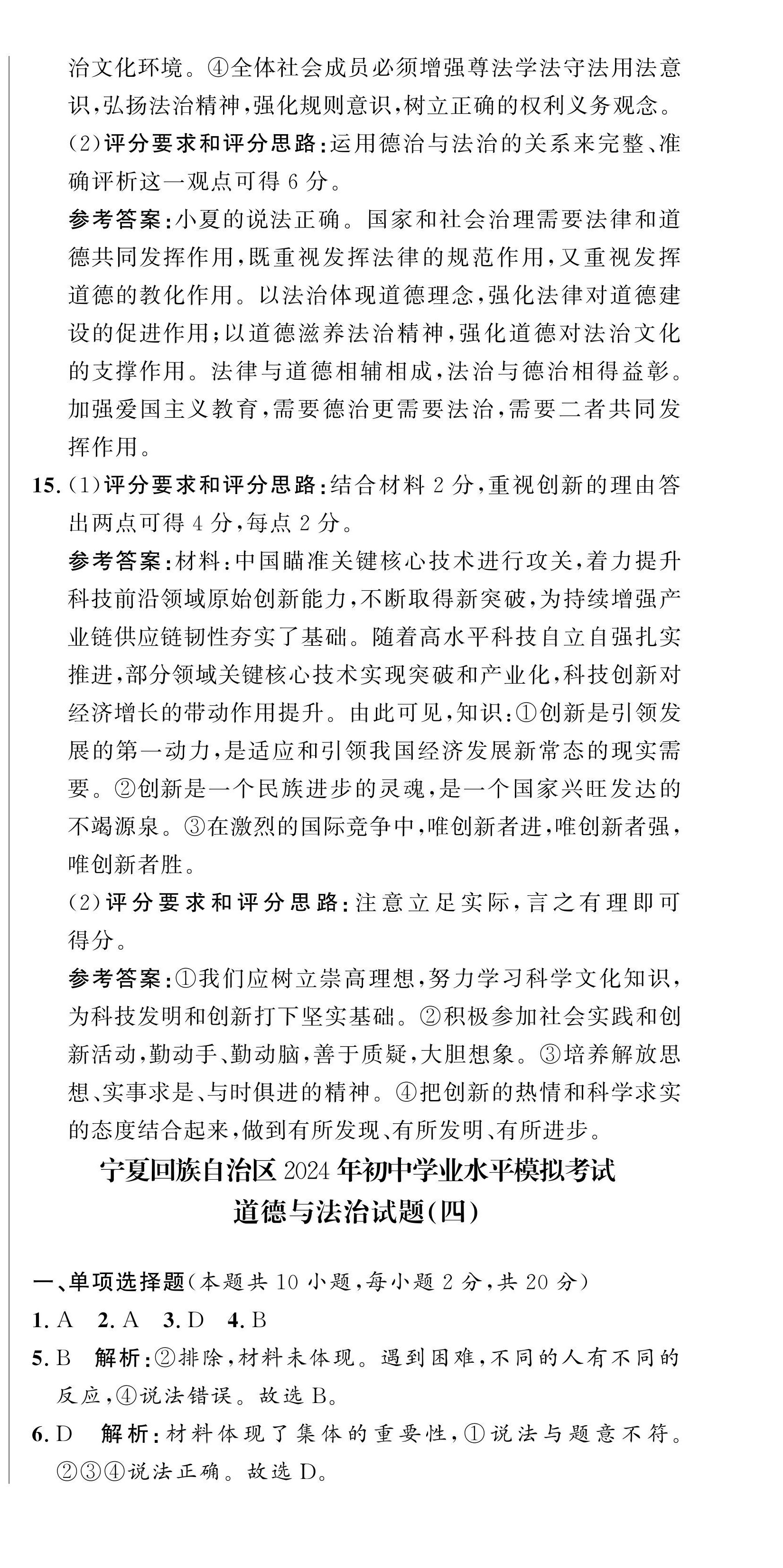 注:目前有些书本章节名称可能整理的还不是很完善,但都是按照顺序排列的,请同学们按照顺序仔细查找。练习册 2024年成功之路宁夏中考仿真模拟卷道德与法治 答案主要是用来给同学们做完题方便对答案用的,请勿直接抄袭。