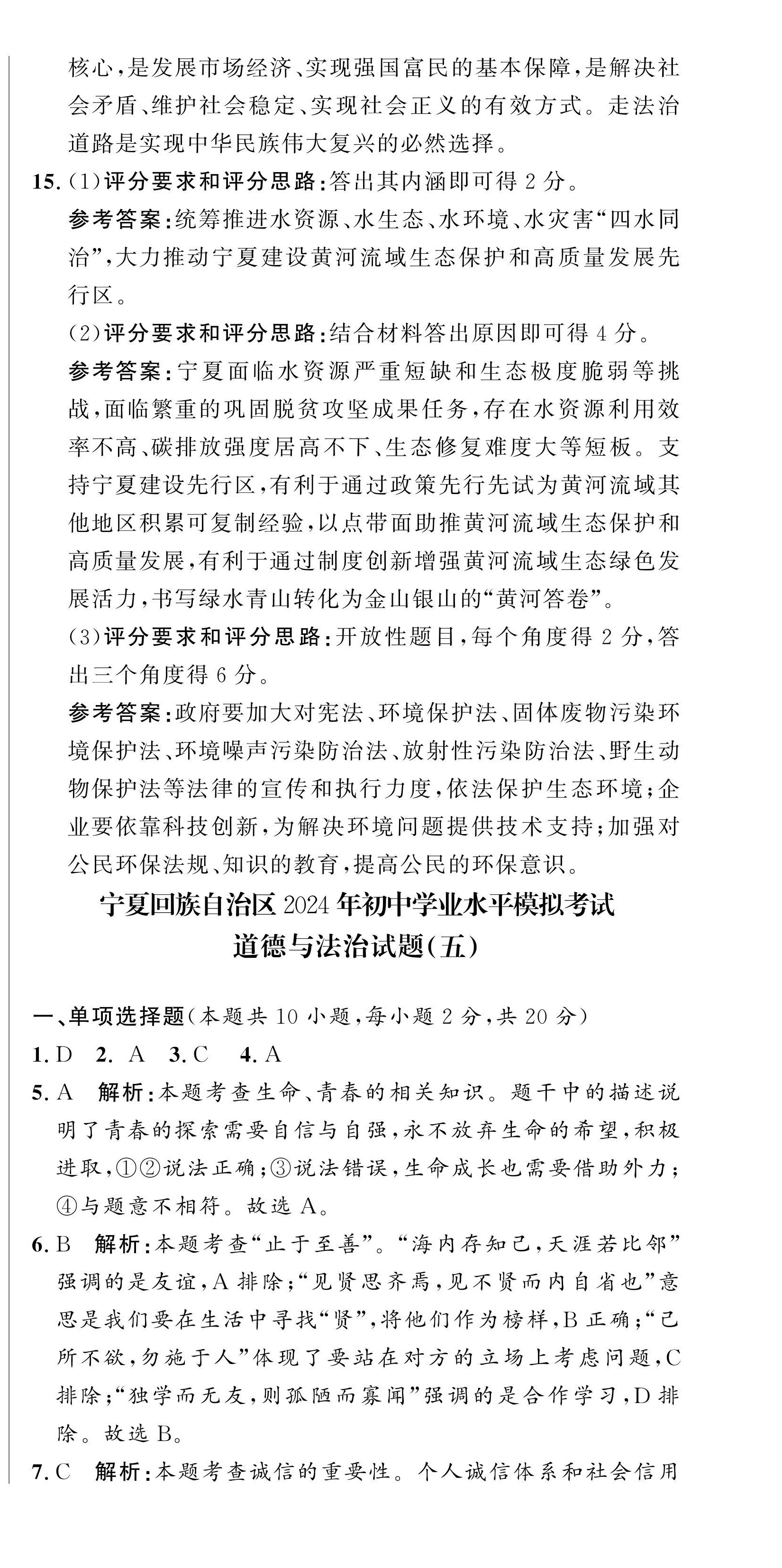 注:目前有些书本章节名称可能整理的还不是很完善,但都是按照顺序排列的,请同学们按照顺序仔细查找。练习册 2024年成功之路宁夏中考仿真模拟卷道德与法治 答案主要是用来给同学们做完题方便对答案用的,请勿直接抄袭。