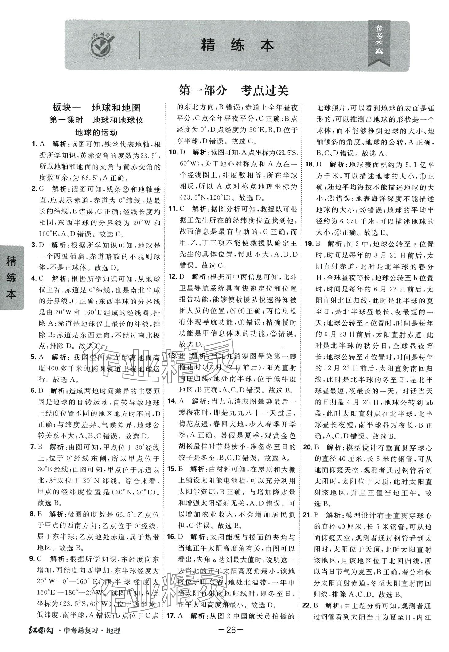 注:目前有些书本章节名称可能整理的还不是很完善,但都是按照顺序排列的,请同学们按照顺序仔细查找。练习册 2024年红对勾中考总复习地理中考 答案主要是用来给同学们做完题方便对答案用的,请勿直接抄袭。