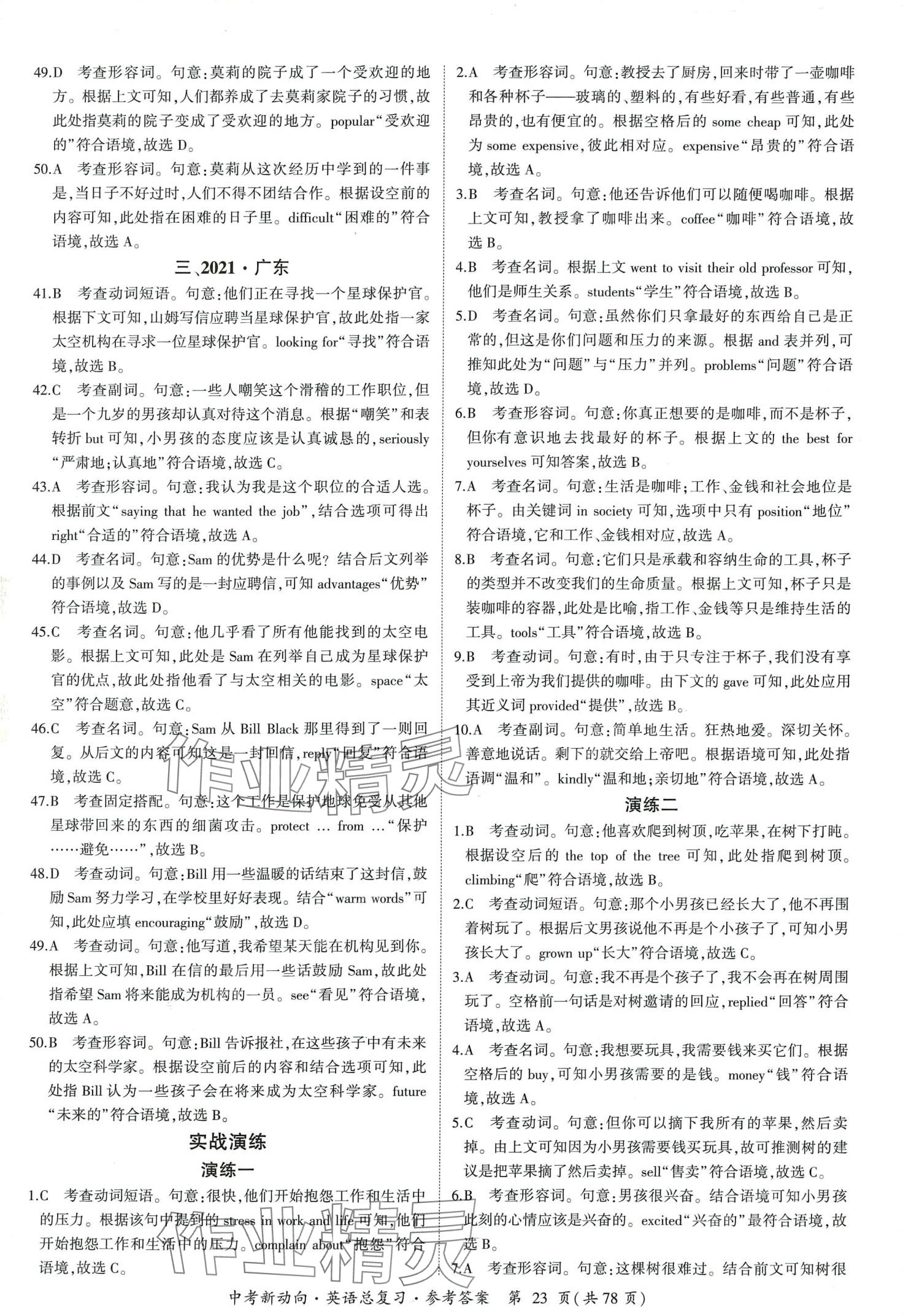 注:目前有些书本章节名称可能整理的还不是很完善,但都是按照顺序排列的,请同学们按照顺序仔细查找。练习册 2024年中考新动向英语中考广东专版 答案主要是用来给同学们做完题方便对答案用的,请勿直接抄袭。