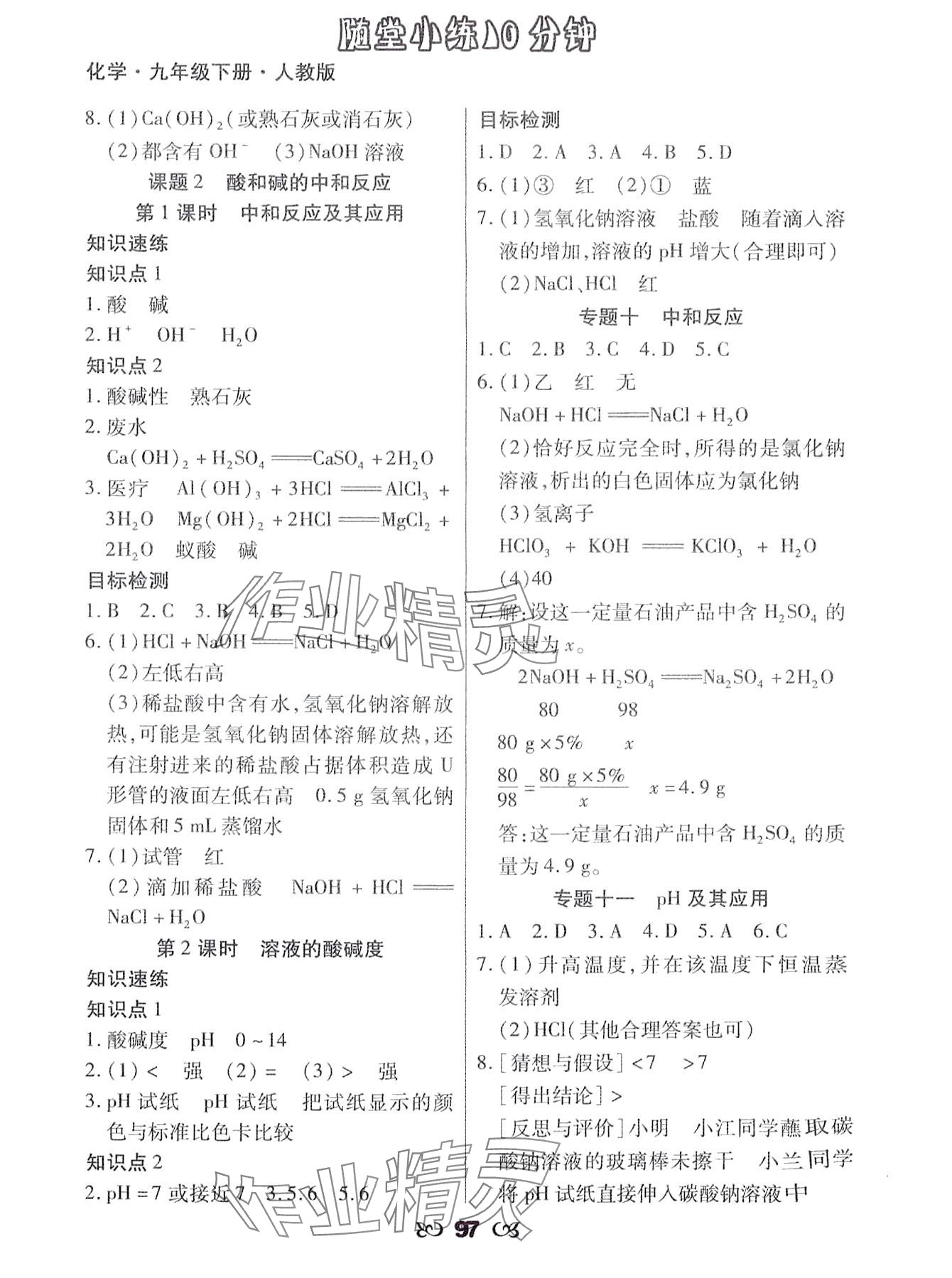 注:目前有些书本章节名称可能整理的还不是很完善,但都是按照顺序排列的,请同学们按照顺序仔细查找。练习册 2024年千里马随堂小练10分钟九年级化学下册人教版 答案主要是用来给同学们做完题方便对答案用的,请勿直接抄袭。