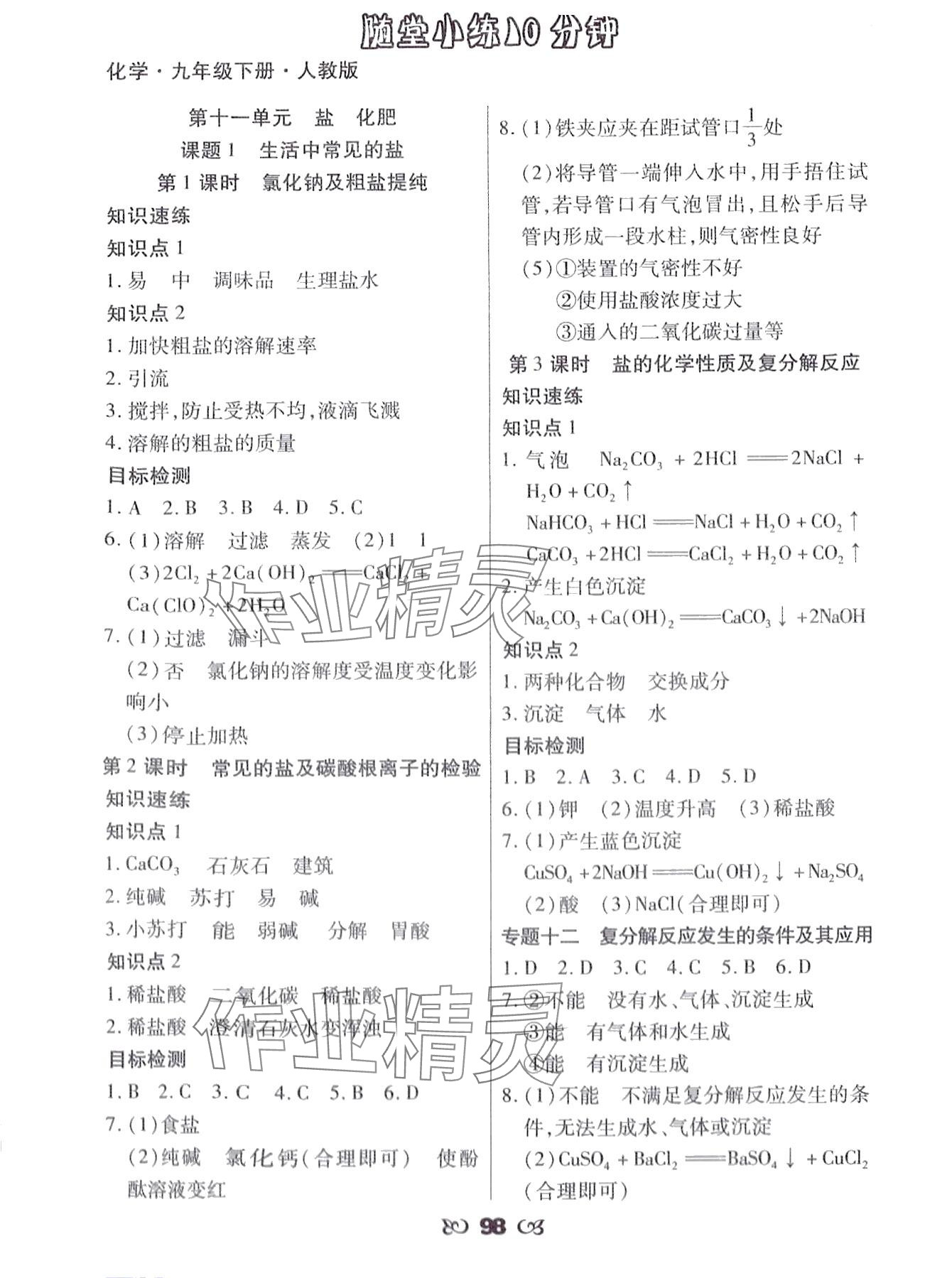 注:目前有些书本章节名称可能整理的还不是很完善,但都是按照顺序排列的,请同学们按照顺序仔细查找。练习册 2024年千里马随堂小练10分钟九年级化学下册人教版 答案主要是用来给同学们做完题方便对答案用的,请勿直接抄袭。