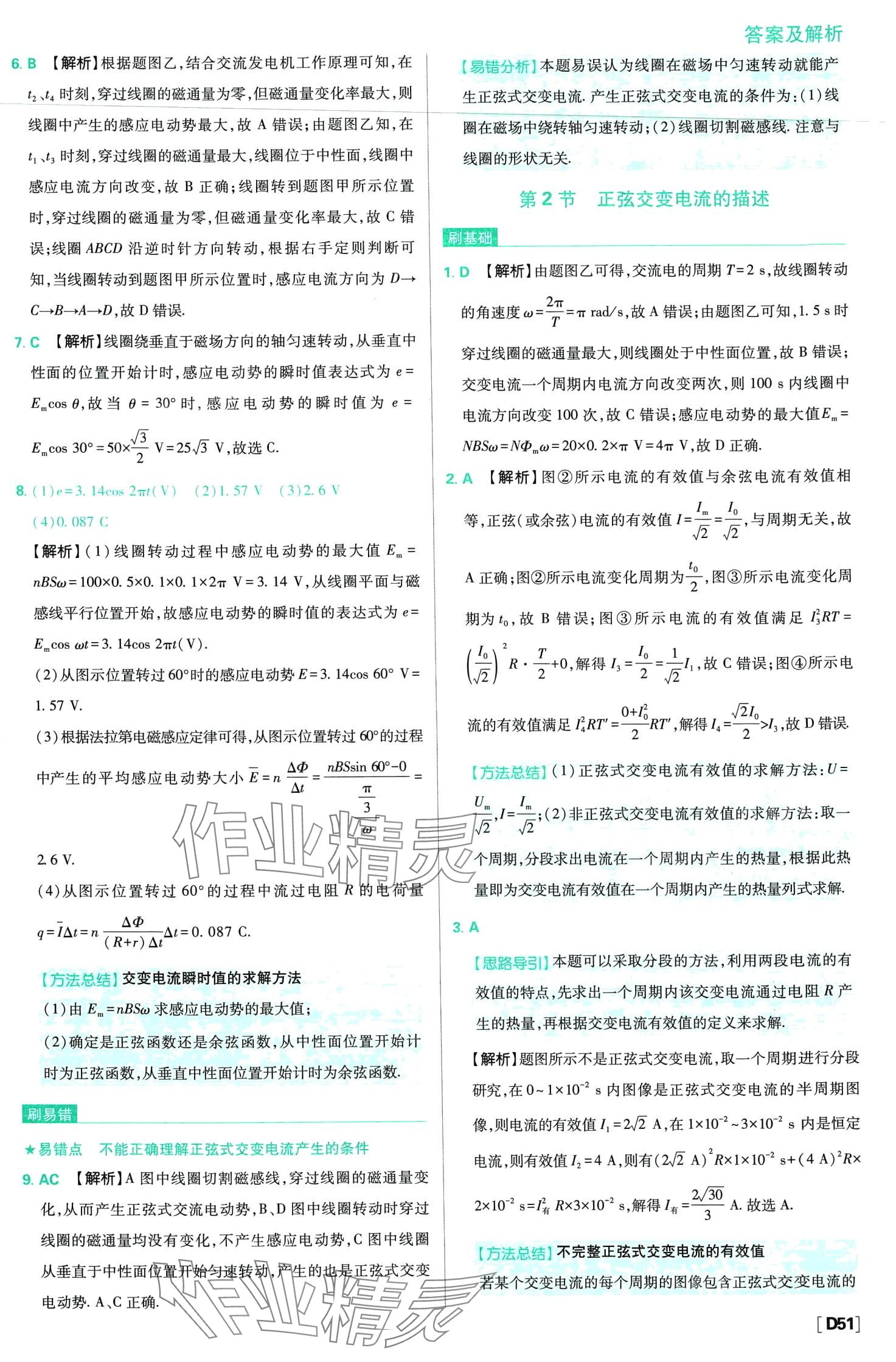 注:目前有些书本章节名称可能整理的还不是很完善,但都是按照顺序排列的,请同学们按照顺序仔细查找。练习册 2024年高中必刷题高中物理择性必修第二册教科版 答案主要是用来给同学们做完题方便对答案用的,请勿直接抄袭。