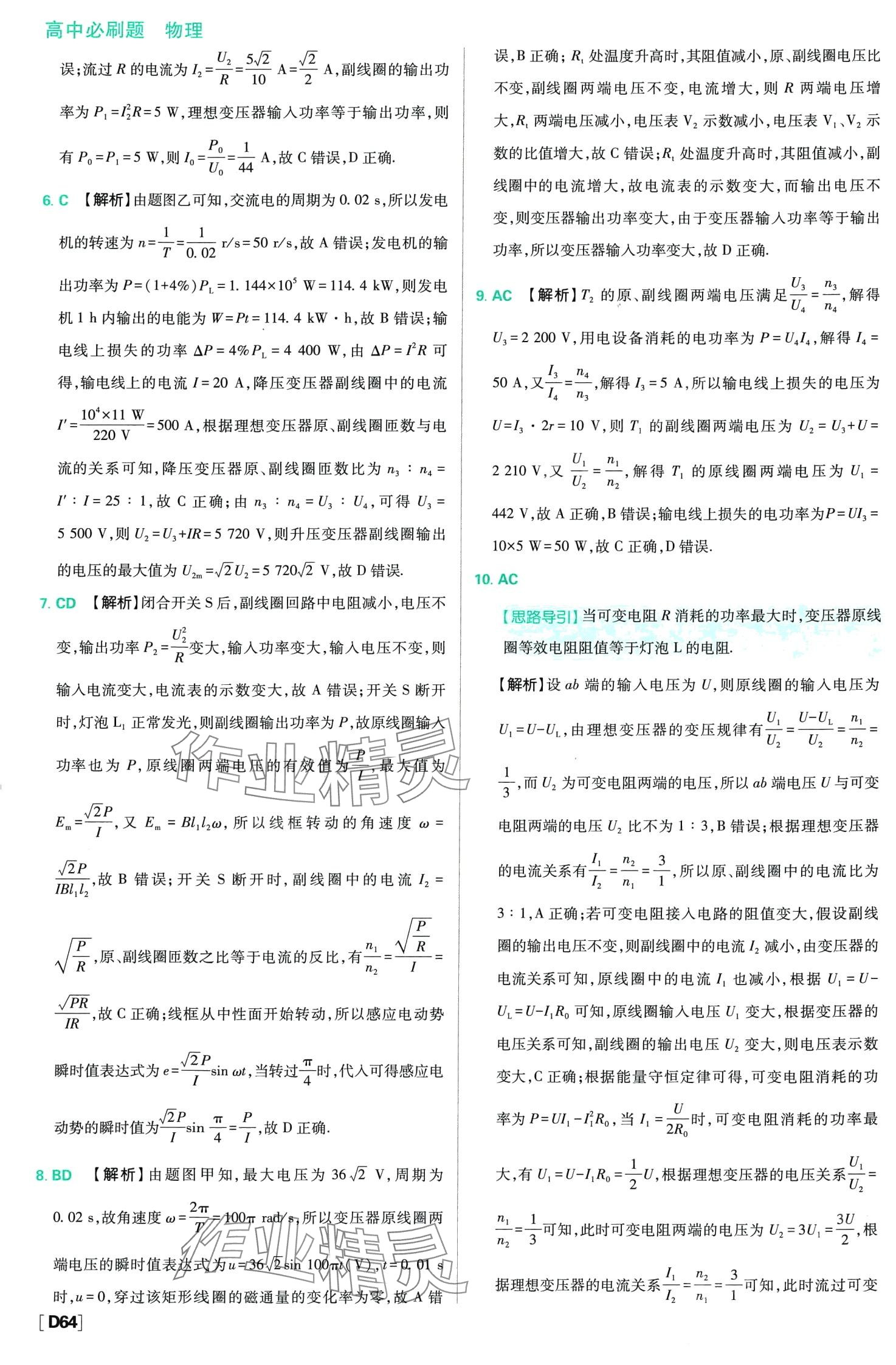 注:目前有些书本章节名称可能整理的还不是很完善,但都是按照顺序排列的,请同学们按照顺序仔细查找。练习册 2024年高中必刷题高中物理择性必修第二册教科版 答案主要是用来给同学们做完题方便对答案用的,请勿直接抄袭。