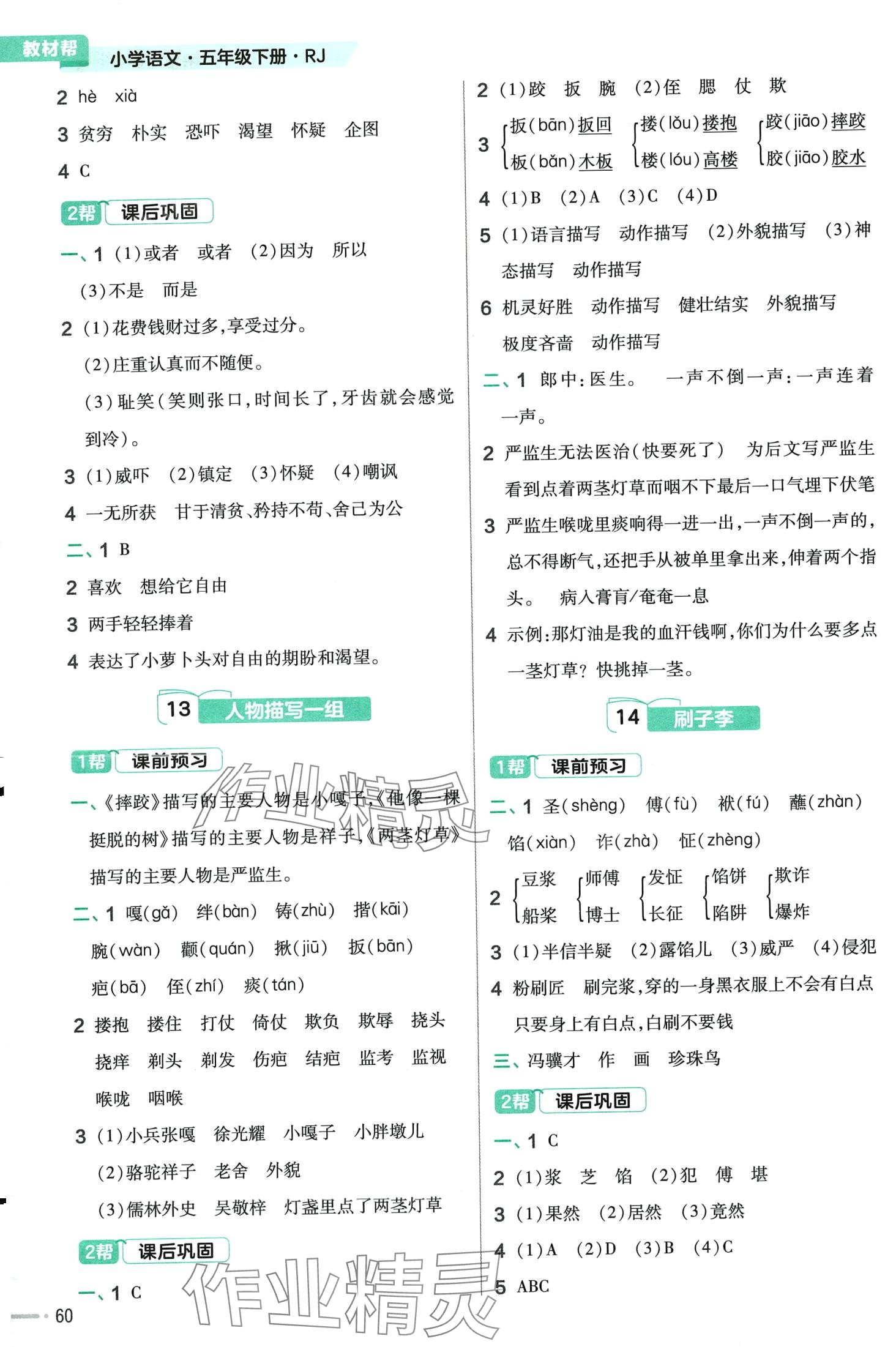 注:目前有些书本章节名称可能整理的还不是很完善,但都是按照顺序排列的,请同学们按照顺序仔细查找。练习册 2024年教材帮五年级语文下册人教版广东专版 答案主要是用来给同学们做完题方便对答案用的,请勿直接抄袭。