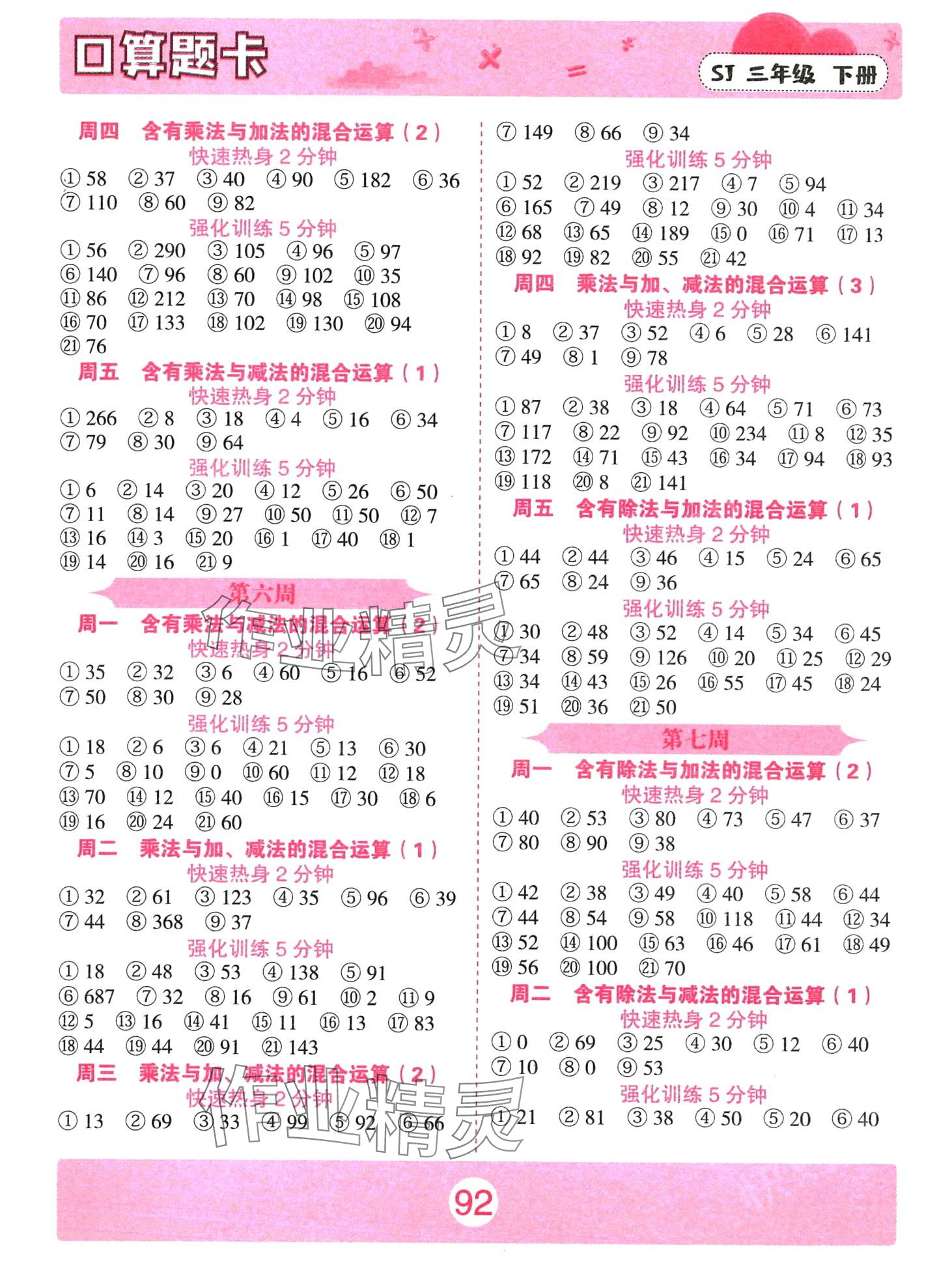 2024年荣恒教育口算题卡三年级数学下册苏教版