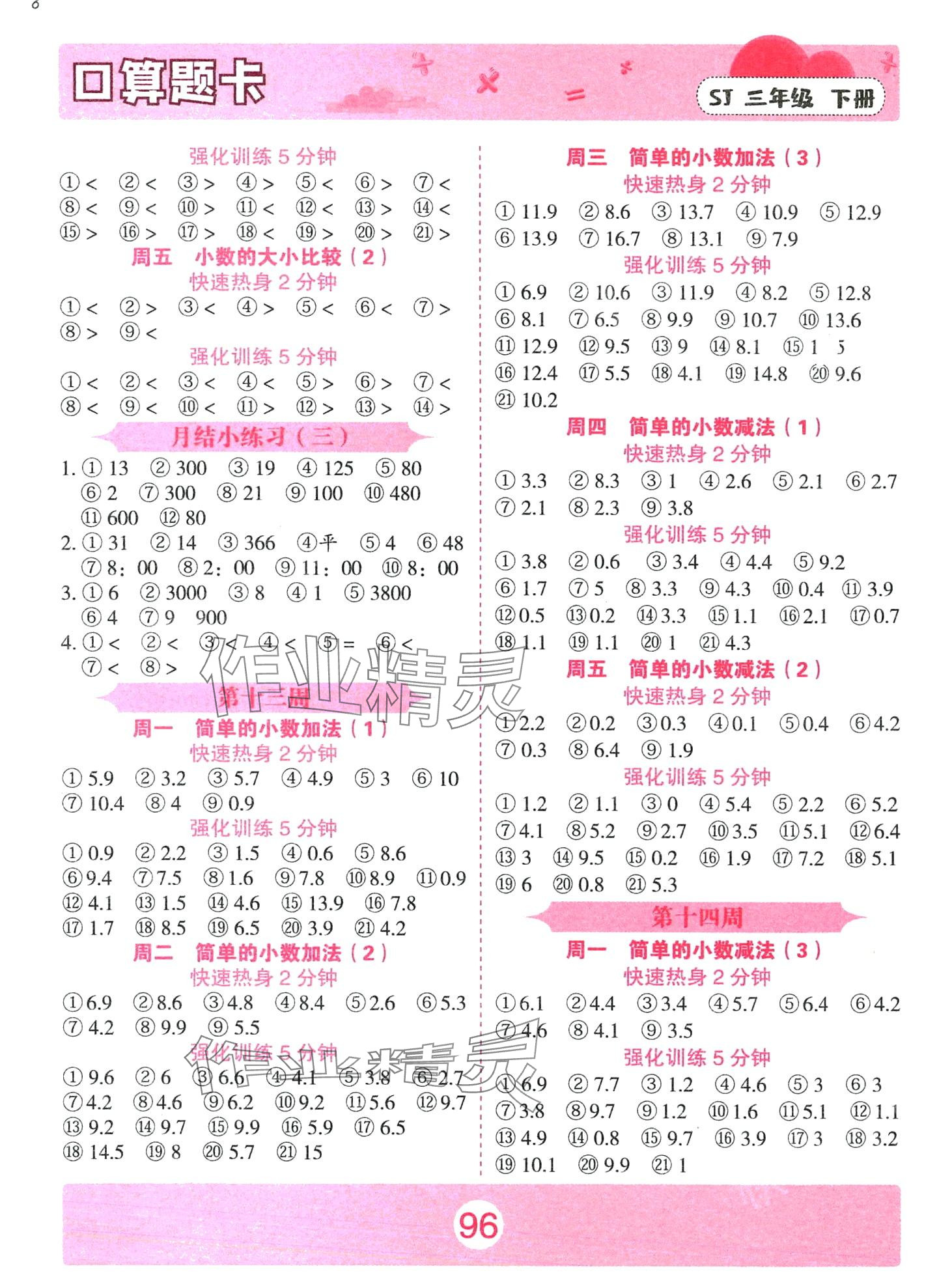 2024年荣恒教育口算题卡三年级数学下册苏教版