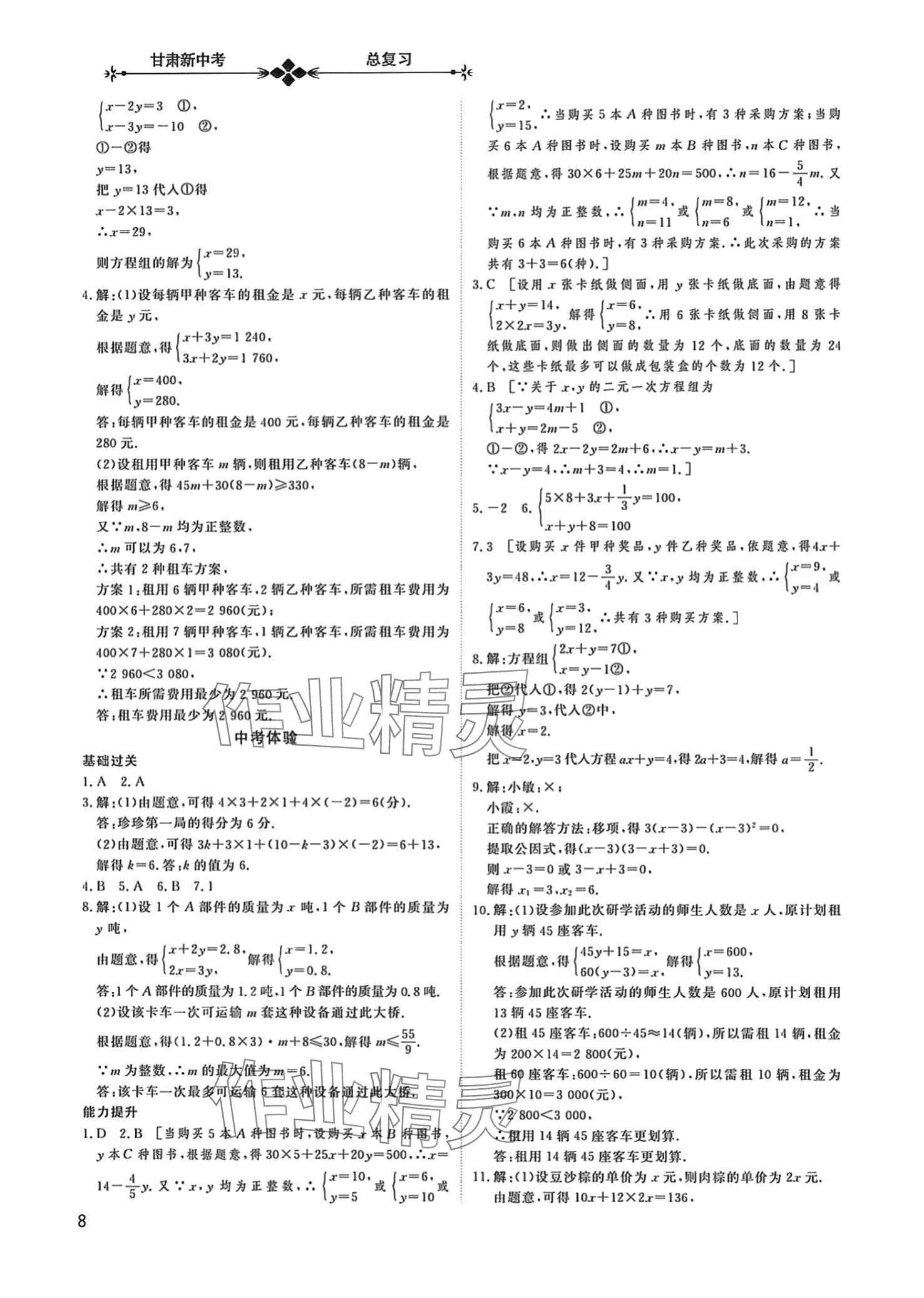 注:目前有些书本章节名称可能整理的还不是很完善,但都是按照顺序排列的,请同学们按照顺序仔细查找。练习册 2024年中考总复习数学中考甘肃专版 答案主要是用来给同学们做完题方便对答案用的,请勿直接抄袭。