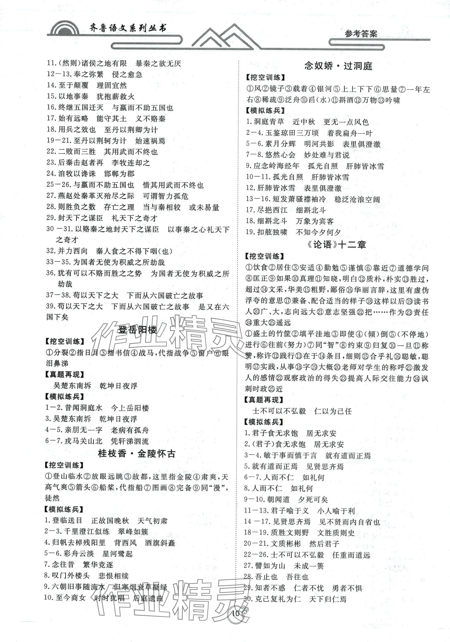 注:目前有些书本章节名称可能整理的还不是很完善,但都是按照顺序排列的,请同学们按照顺序仔细查找。练习册 2024年古诗文默写满分突破高中语文通用版 答案主要是用来给同学们做完题方便对答案用的,请勿直接抄袭。