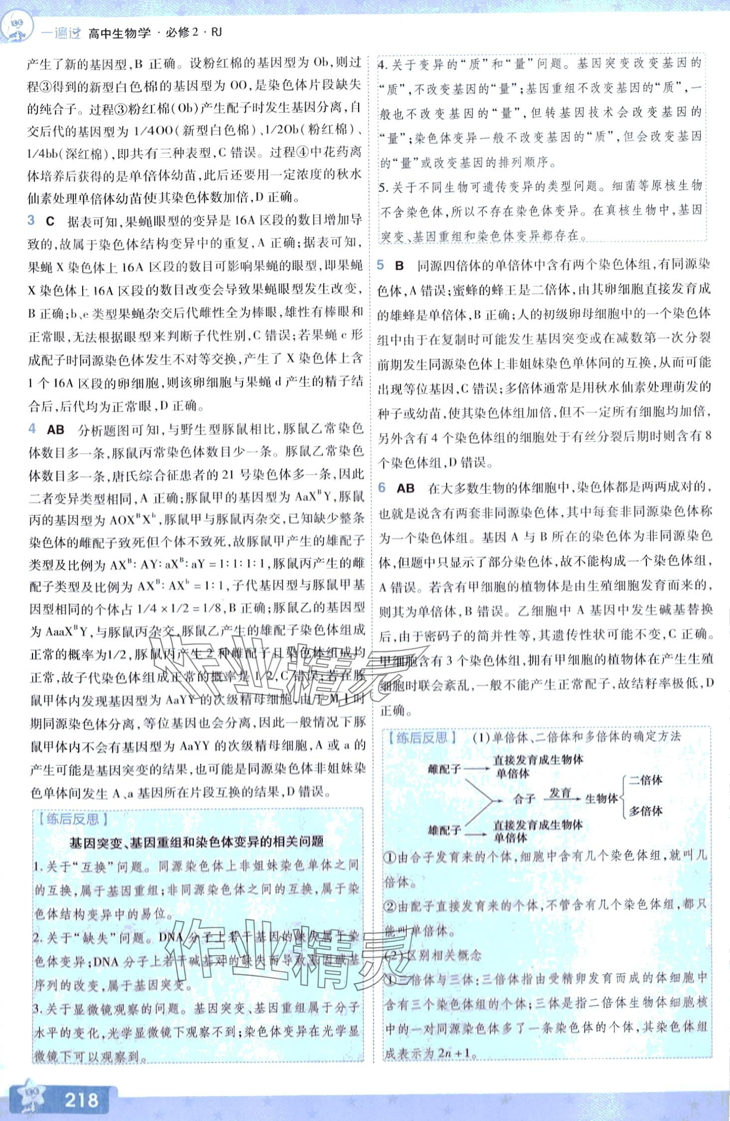 注:目前有些书本章节名称可能整理的还不是很完善,但都是按照顺序排列的,请同学们按照顺序仔细查找。练习册 2024年一遍过高中生物必修2人教版 答案主要是用来给同学们做完题方便对答案用的,请勿直接抄袭。